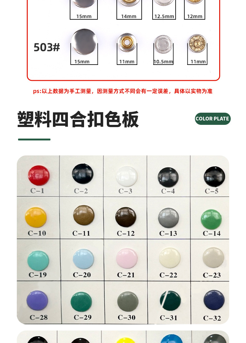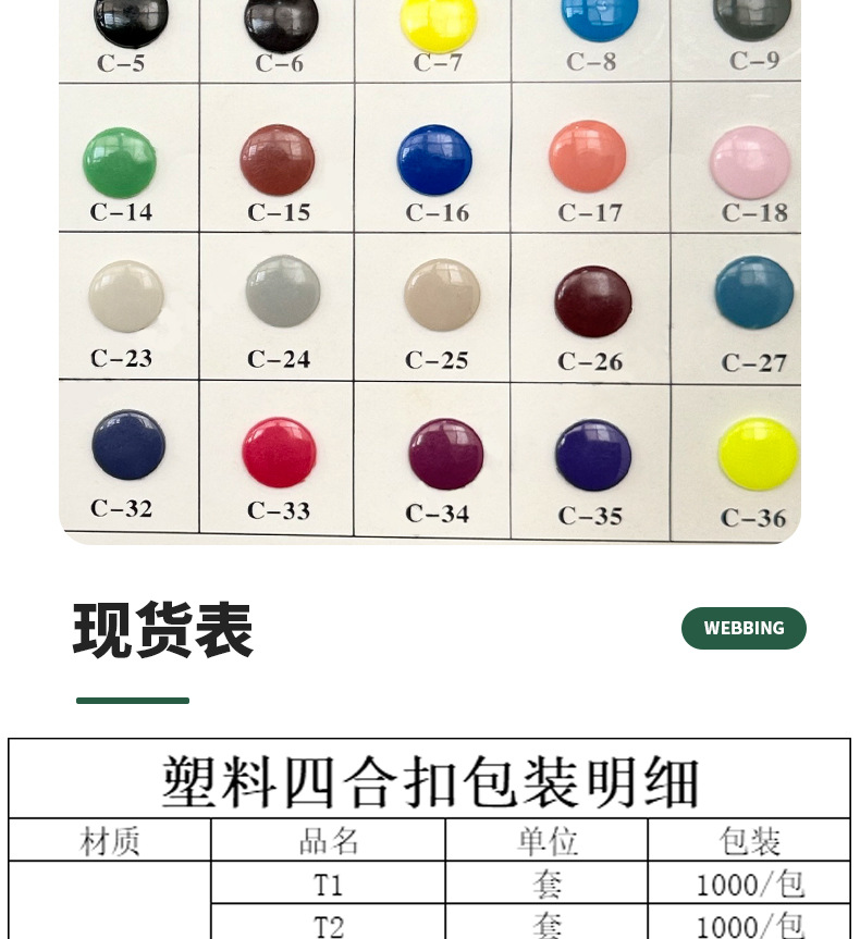 プラスチック製のスナップボタン