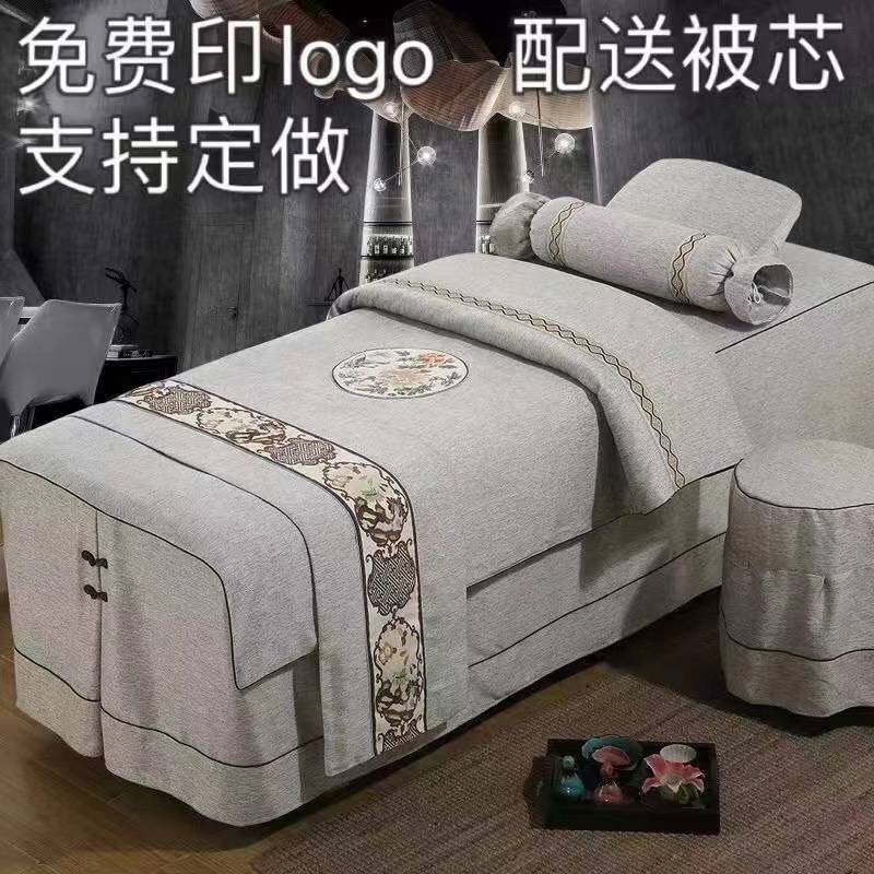新型綿麻美容ベッドカバー四点セットシンプル四季通用美容院マッサージシャンプー