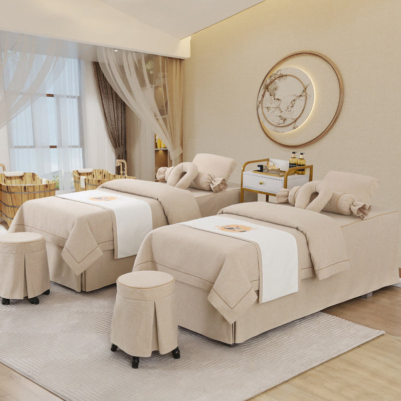 ハイエンド綿麻美容ベッドカバー4点セットシンプルな皮膚管理耳頭治療美容院マッサージベッドカバー卸売り