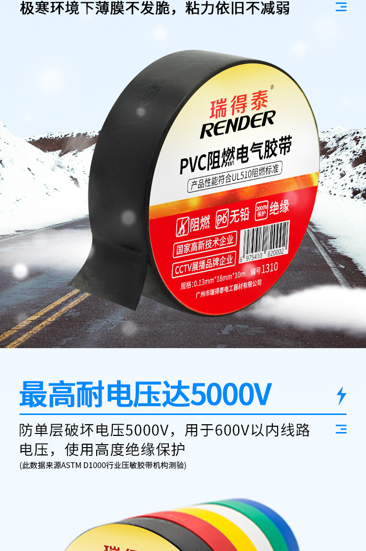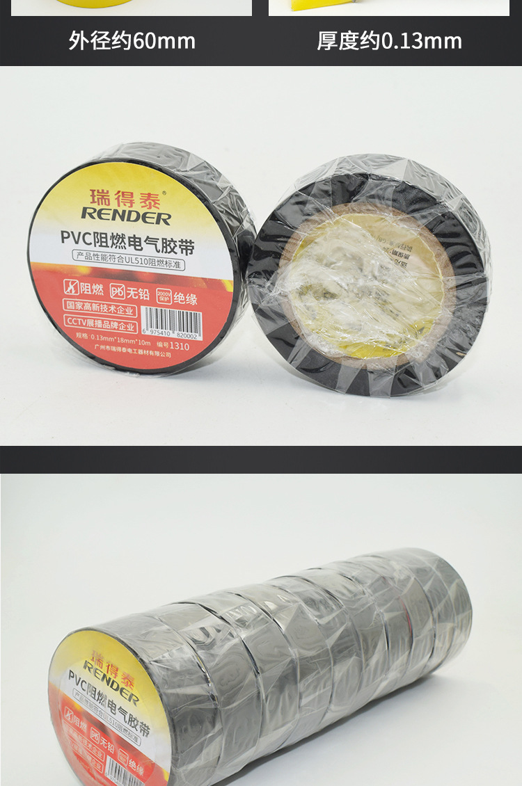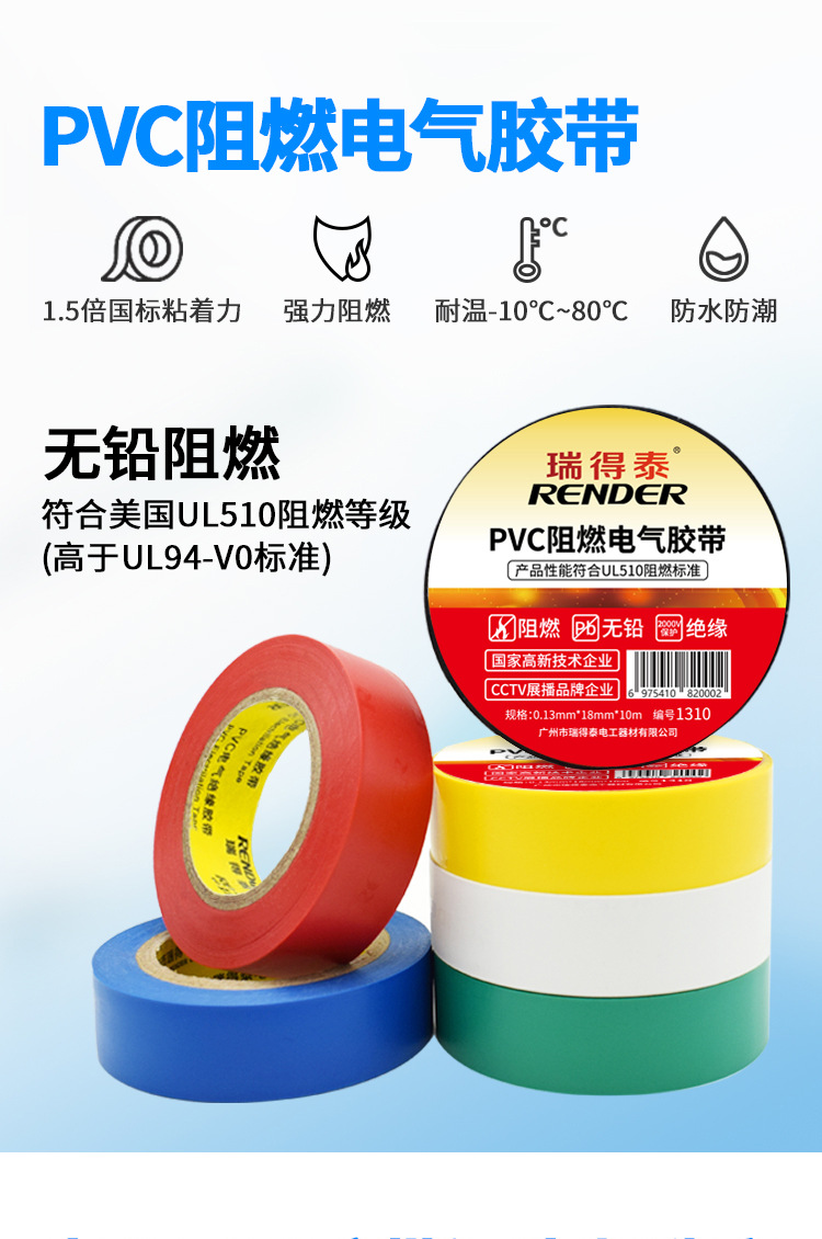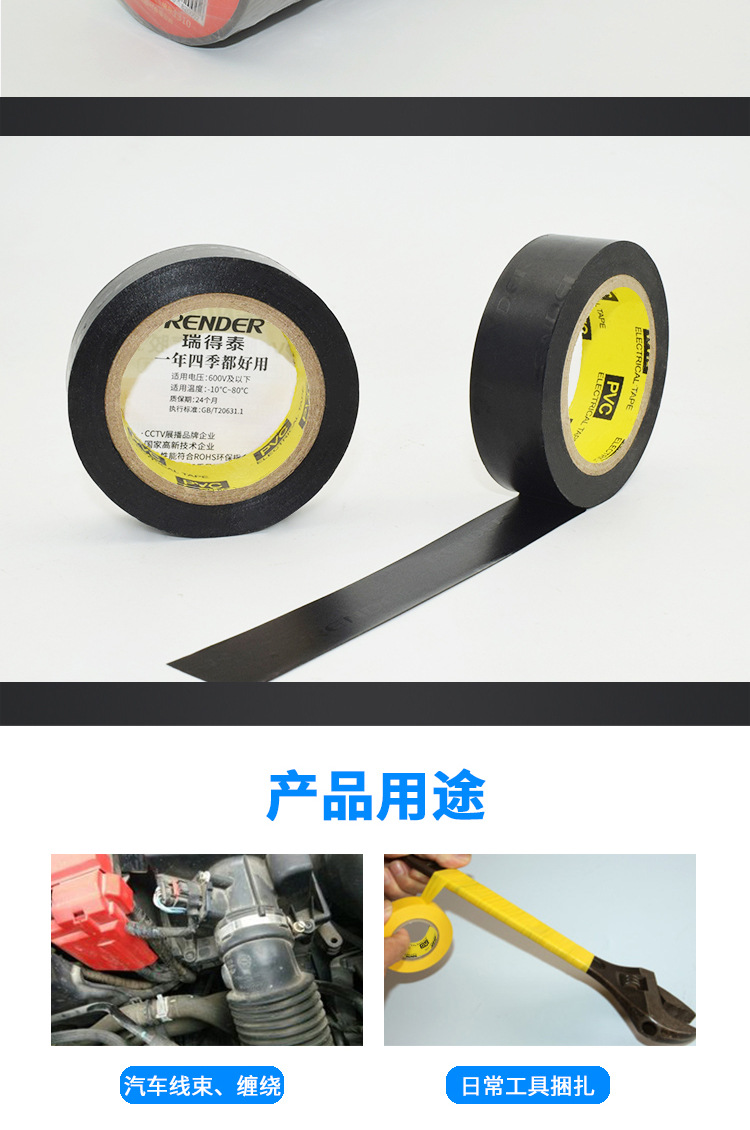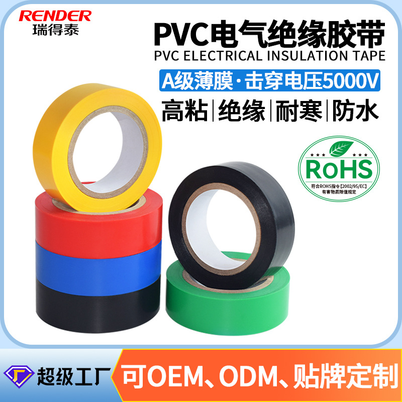瑞得泰pvc電気テープ黒色電気絶縁テープ環境保護白色防水電気テープ卸売り
