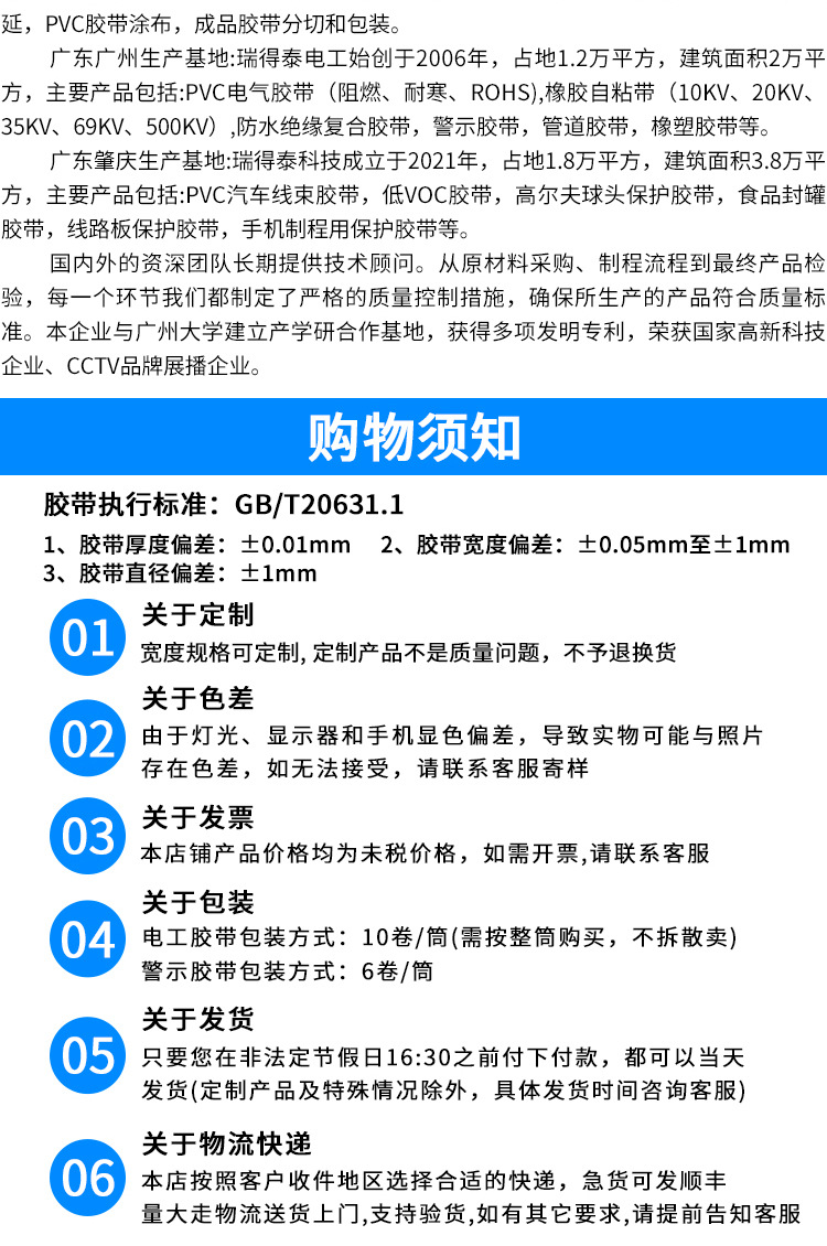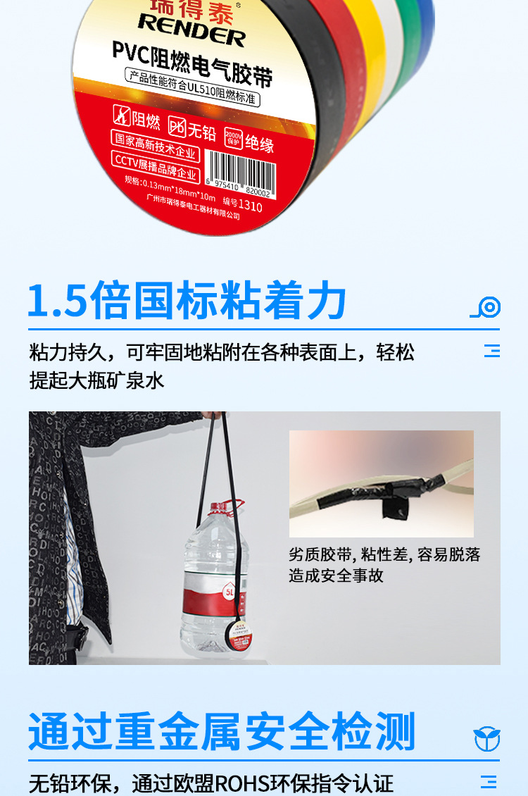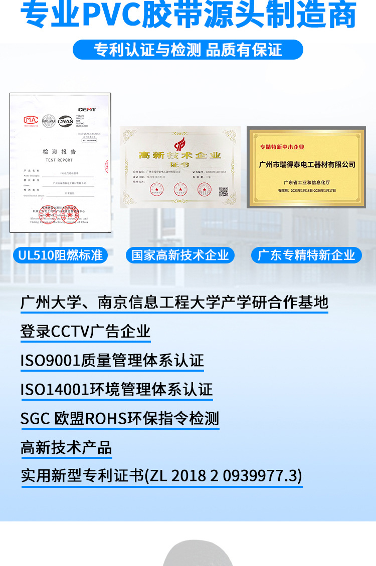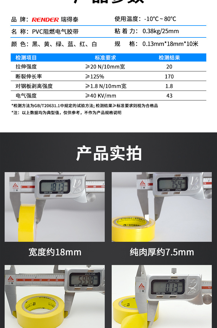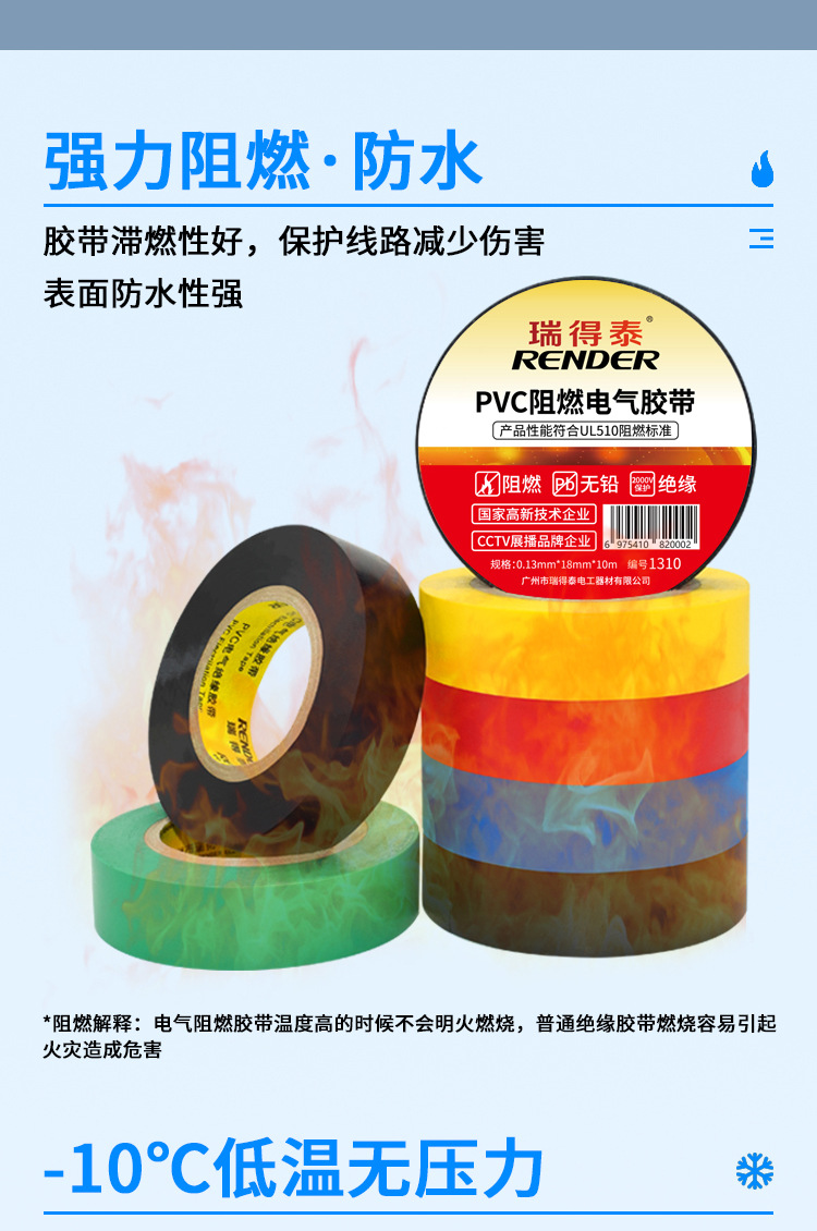 瑞得泰pvc電気テープ黒色電気絶縁テープ環境保護白色防水電気テープ卸売り