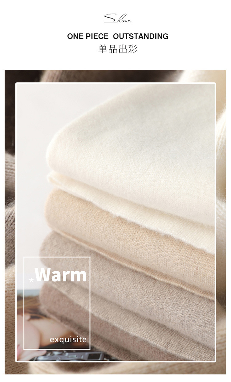秋冬季新款纯羊毛衫女高领花纱宽松简约款慵懒风针织打底毛衣