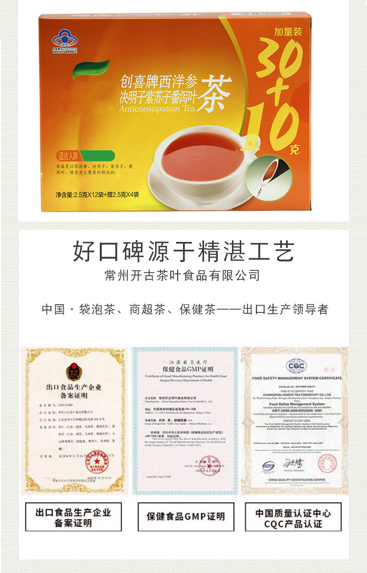 桜創喜牌西洋参決明子紫蘇子番下痢葉茶保健機能: 便利便秘法者用