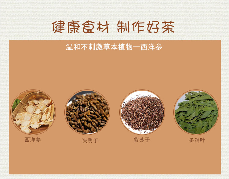 主な原料 西洋参、ケツメイシ、シソ、下痢の葉