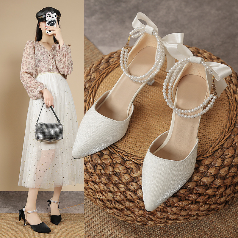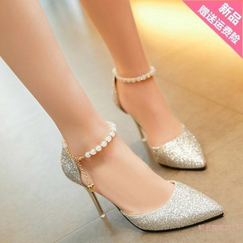 韩版细跟尖头高跟鞋珍珠凉鞋