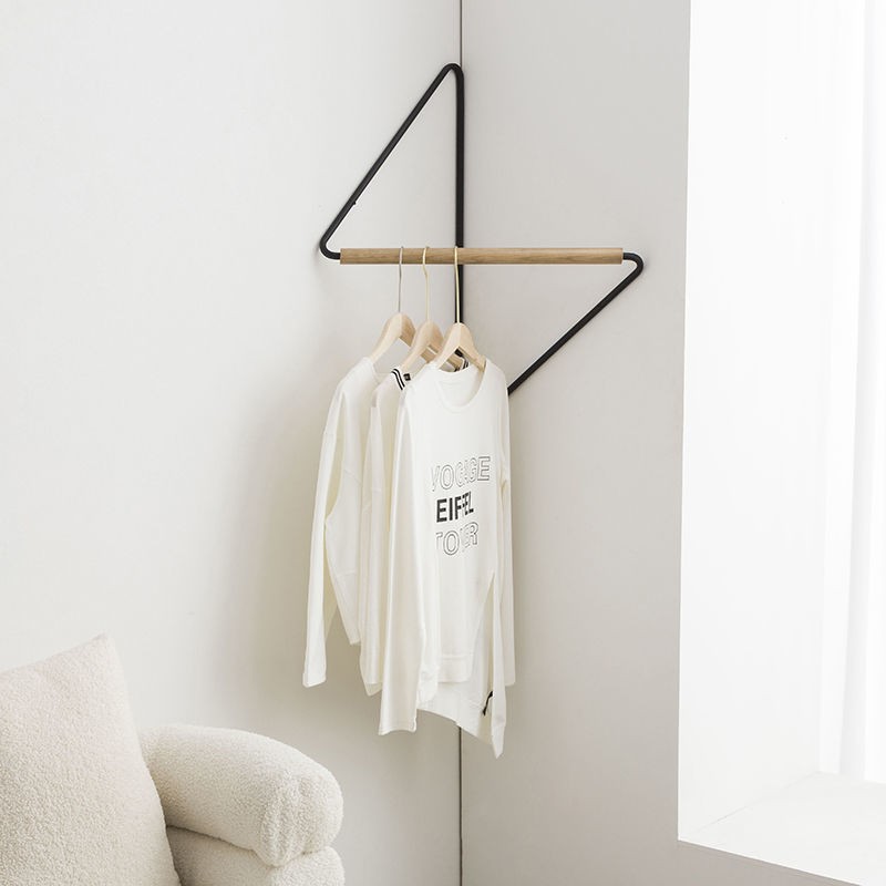 北欧の現代のシンプルなアイデアのコーナーの服のハンガーのデザイナーのデザインの壁の隅の壁掛けのハンガーのアイデアの鉄芸の木製