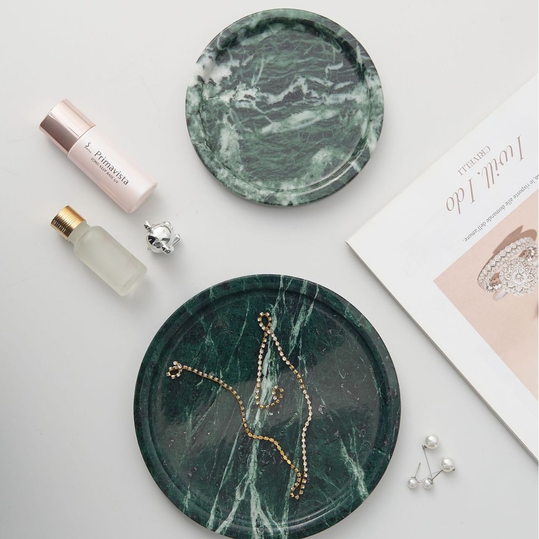 天然大理石の高級ストーングリーンラウンドトレイ収納ポーズ装飾セットアップソフト装飾ハイエンドホテルバー