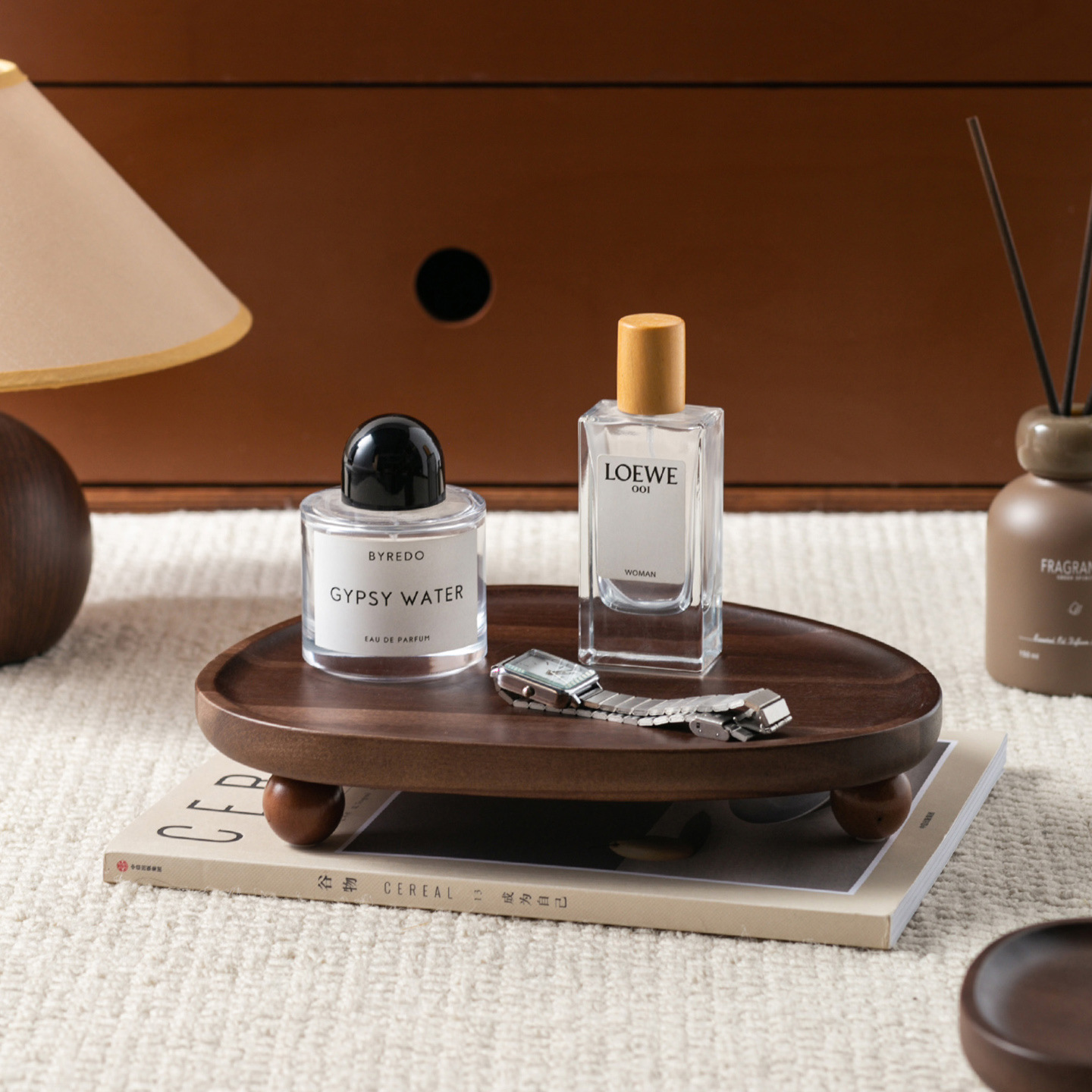 デスクトップクリエイティブ木製トレイ装飾アロマテラピー装飾品北欧スタイル化粧品収納トレイ背の高い木製トレイ