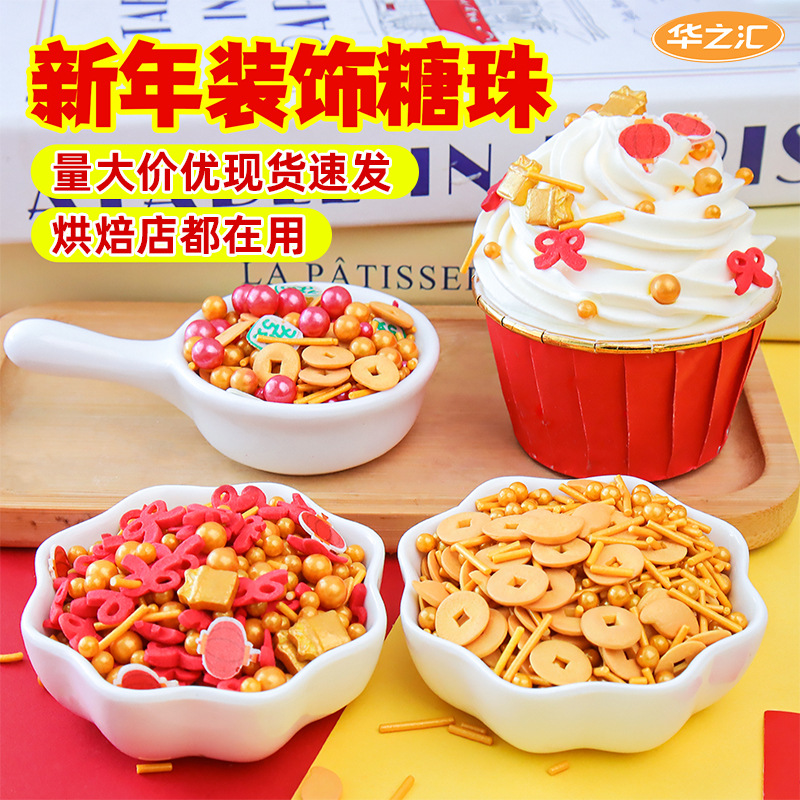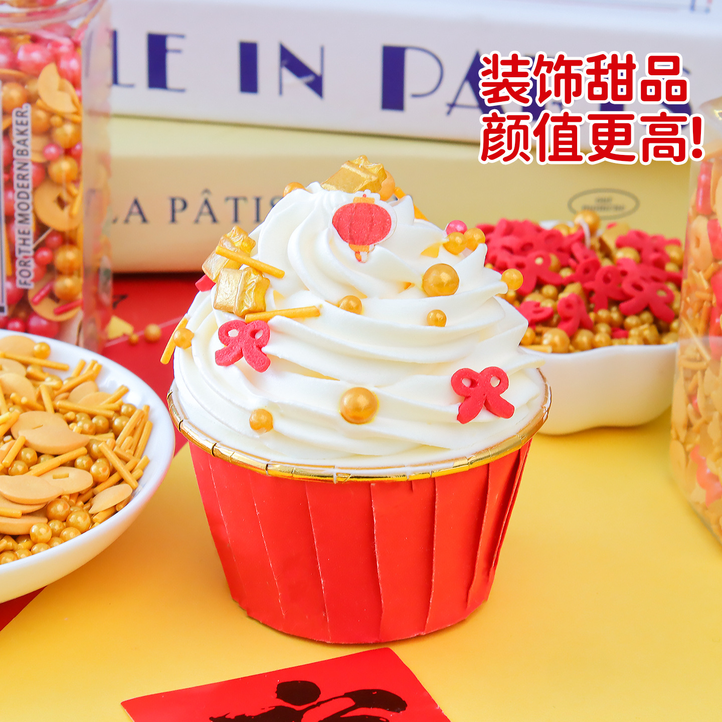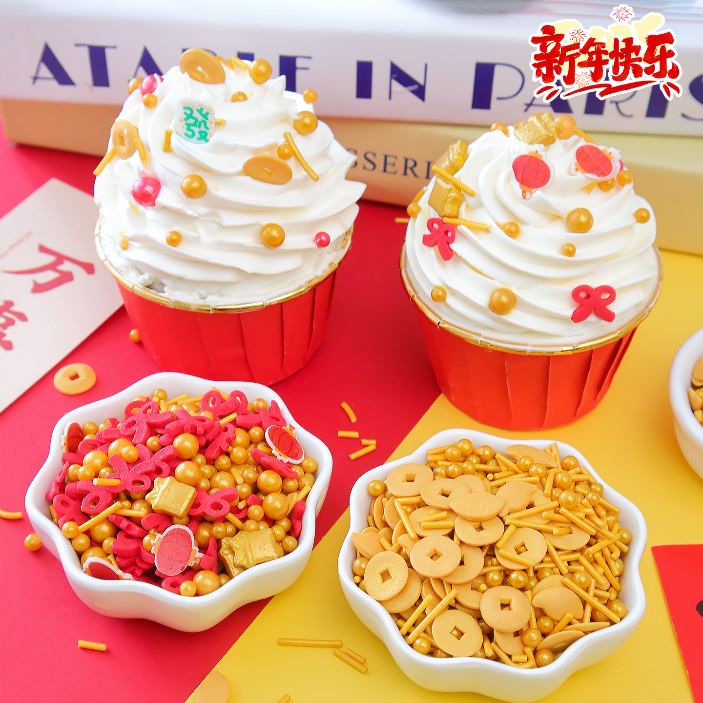 新年蛋糕装饰元旦跨年新春快乐纸杯甜品烘焙原料可食用糖珠批发