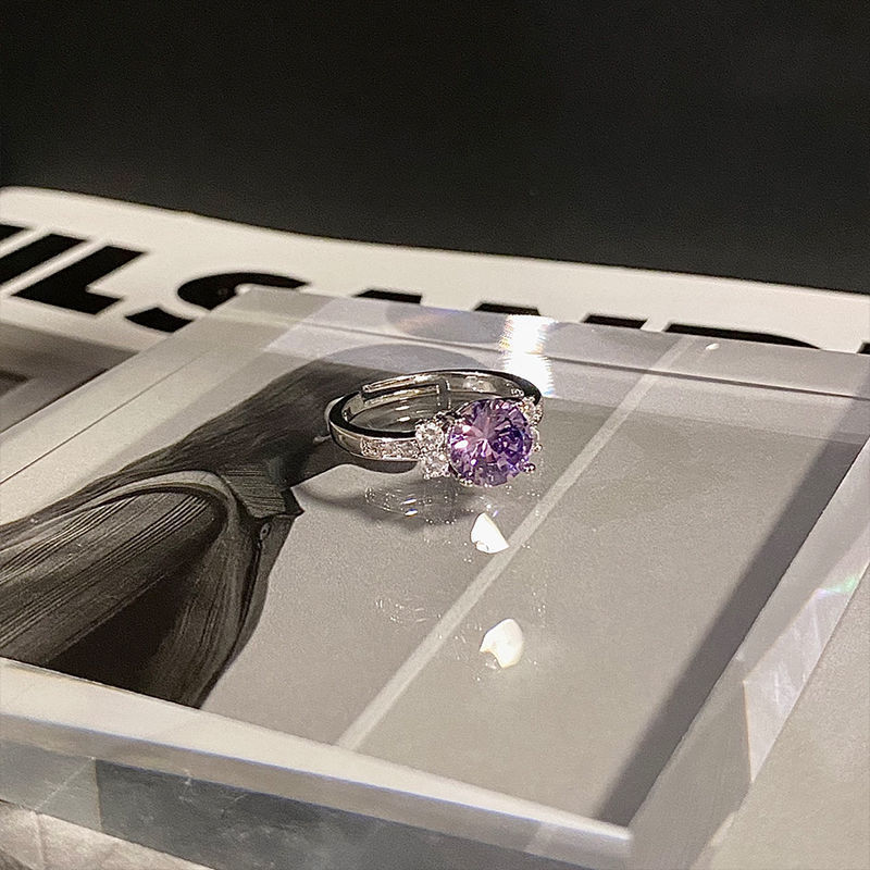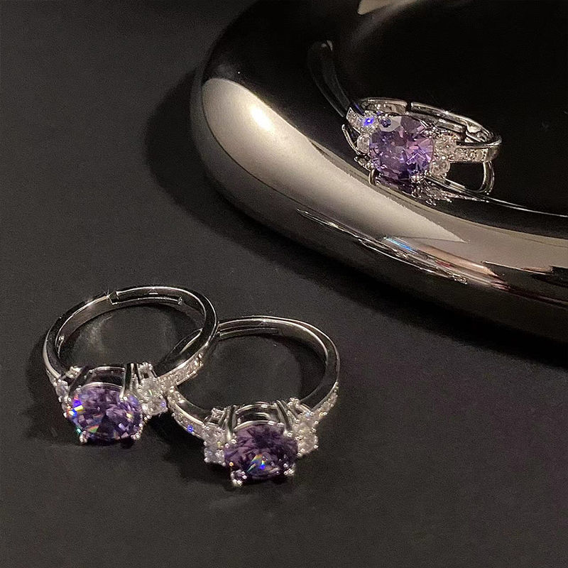 MoodCat.スイートクールパープルダイヤモンドスーパーフラッシュダイヤモンドホットガールオープン調節可能なカップルリング女性用