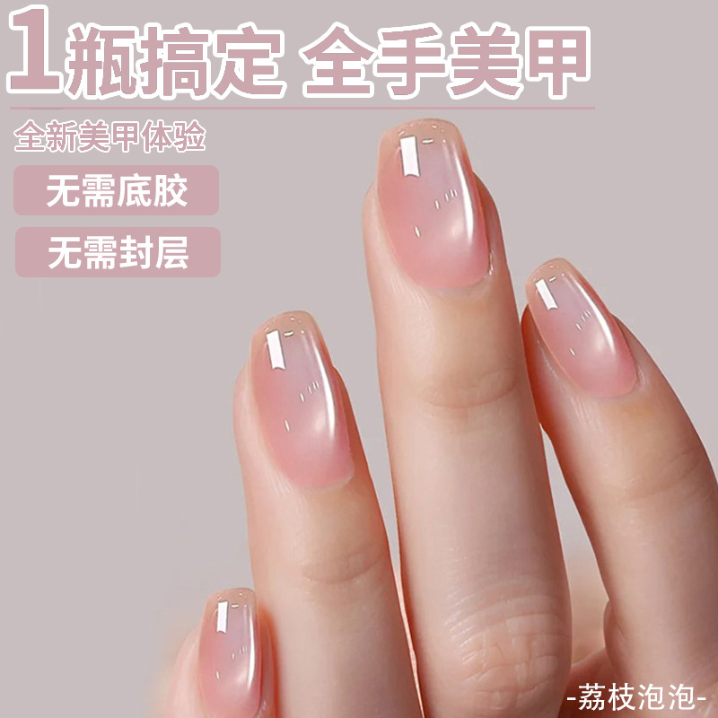 懒人三合一玻璃珠猫眼指甲油胶荔枝泡泡粉色白开水猫眼免底胶封层