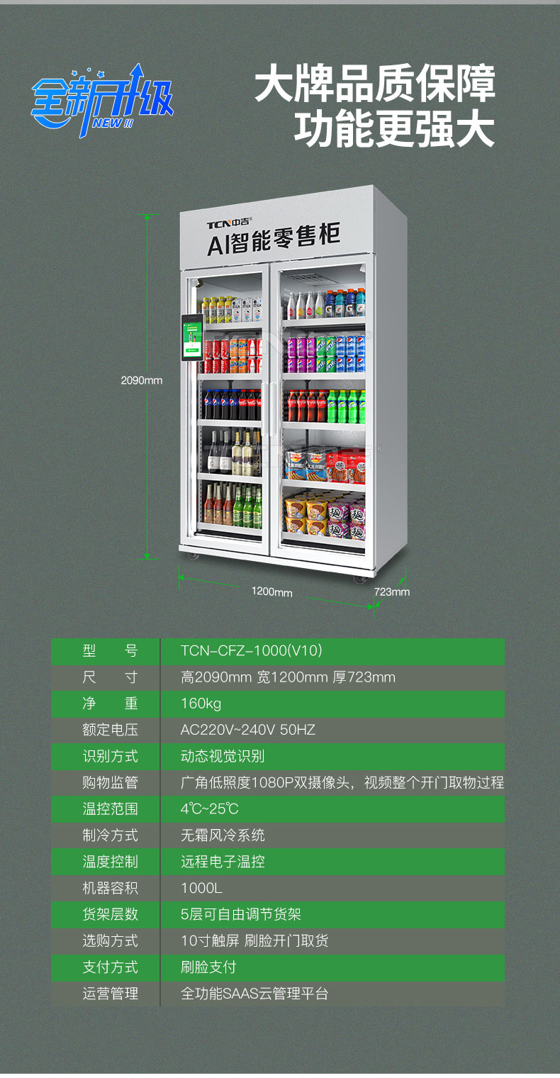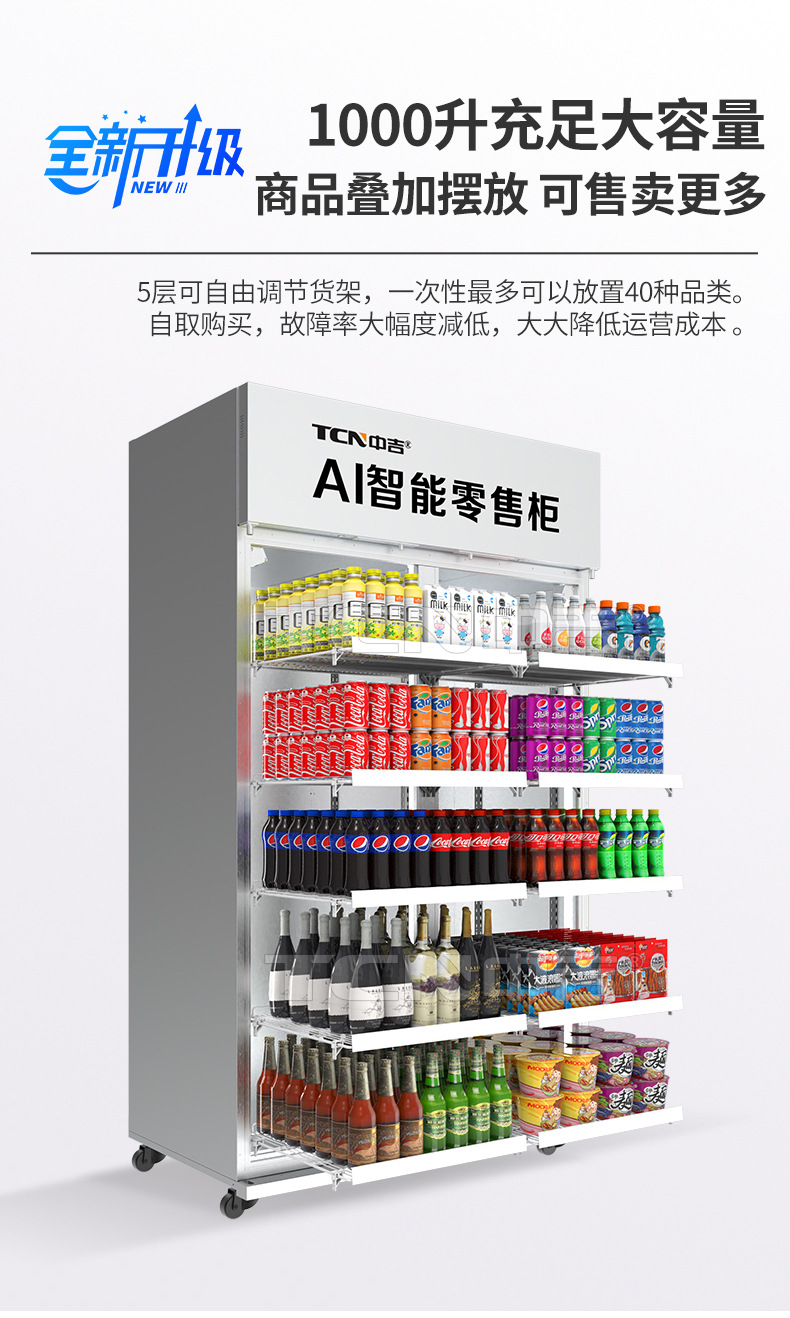 中吉1000lスキャンコード支払動態視覚認識知能販売コンテナ箱全体牛乳自動販売機