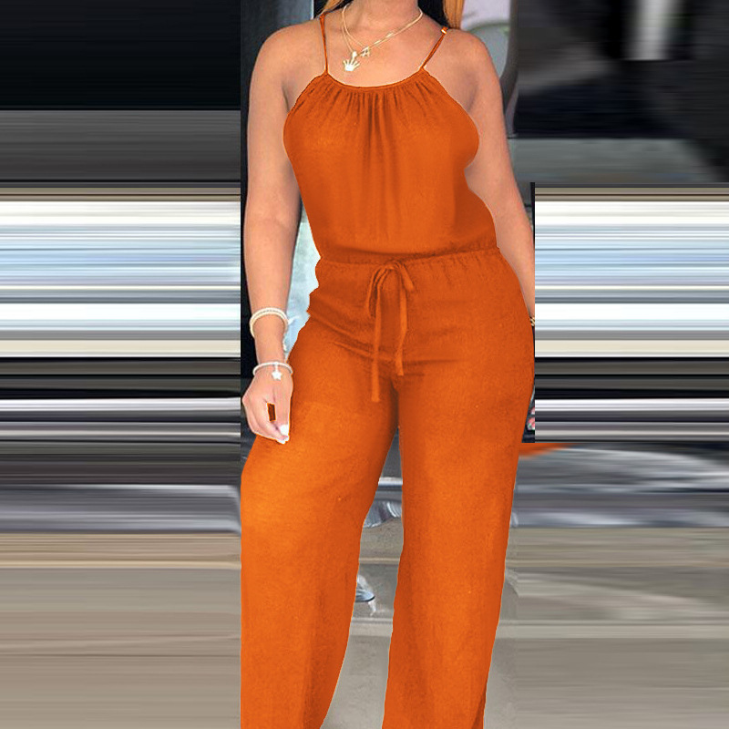 2022袖なし純色綿麻引きロープカジュアルパンツ