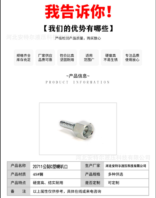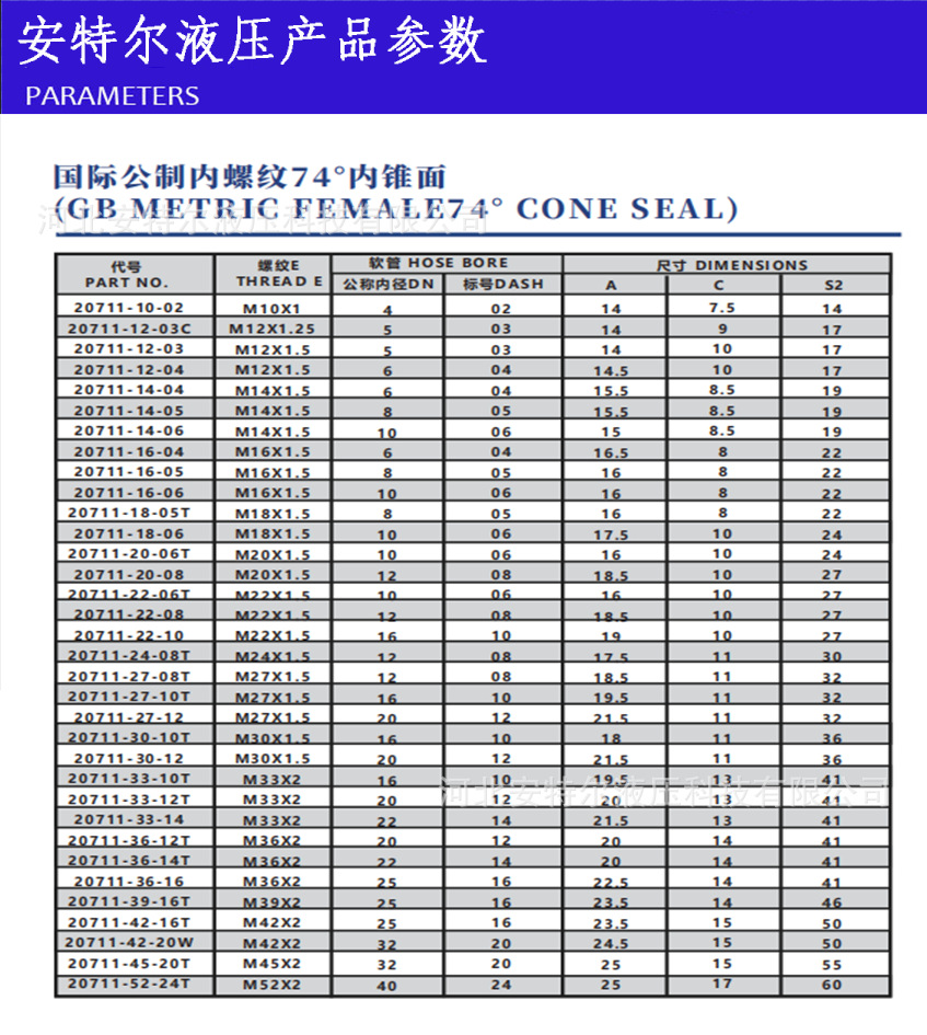 20711c型ベルマウス74度内テーパ面高圧ホース継手油圧チューブ部品建設機械車両