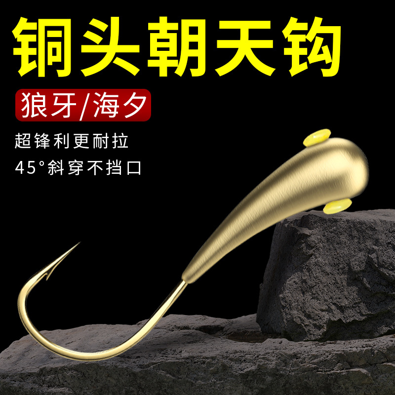 新型銅頭朝天フック金海夕狼牙フック銅ペンダント手作り伝統銅坤穿孔冬釣りフナフック