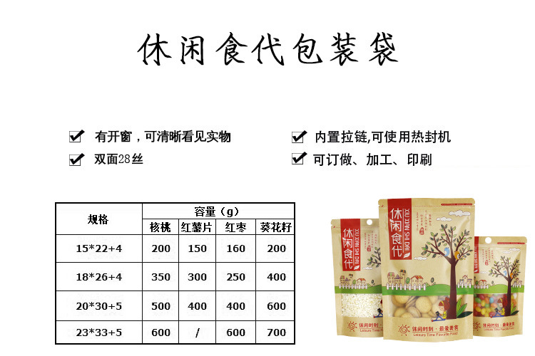 レジャー食品包装袋ドライフルーツナッツキャンディー自封袋スナック袋瓜子開心果ナツメ袋