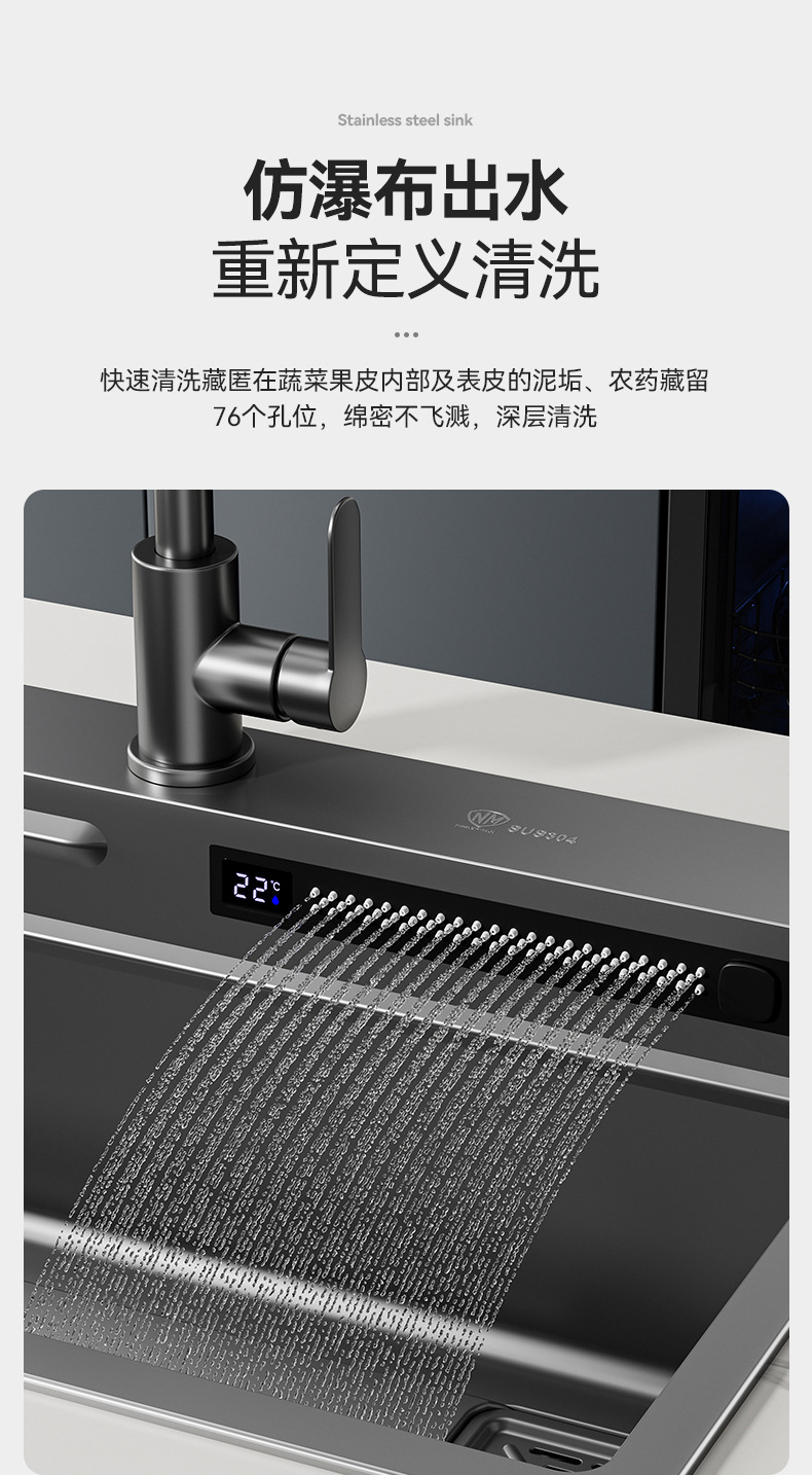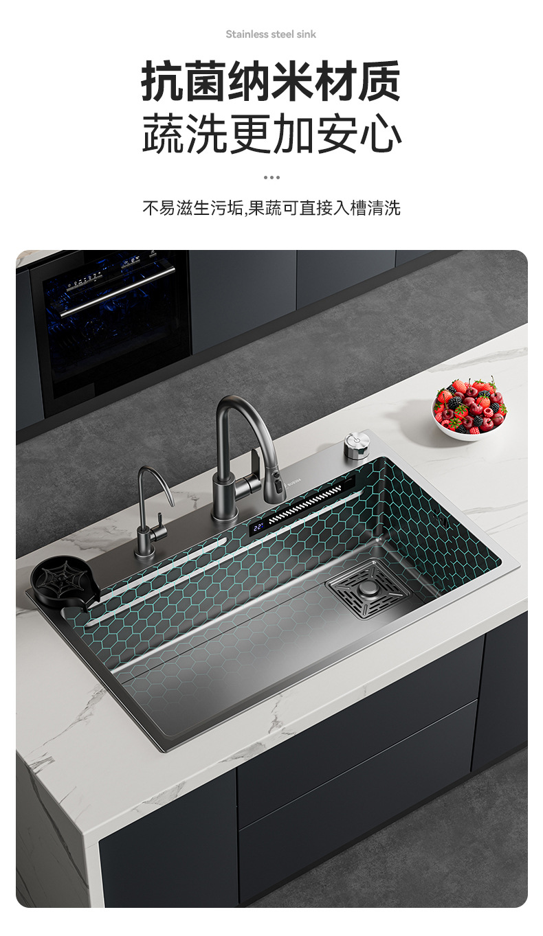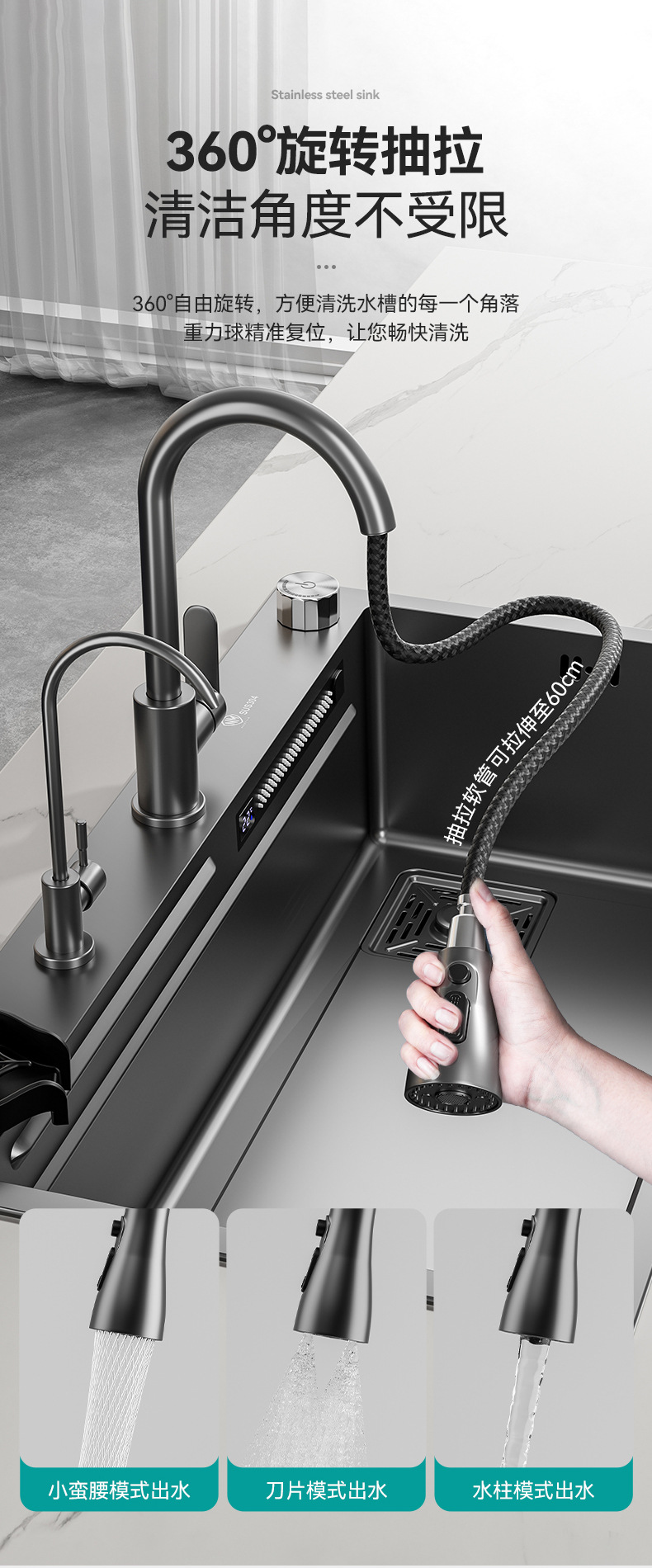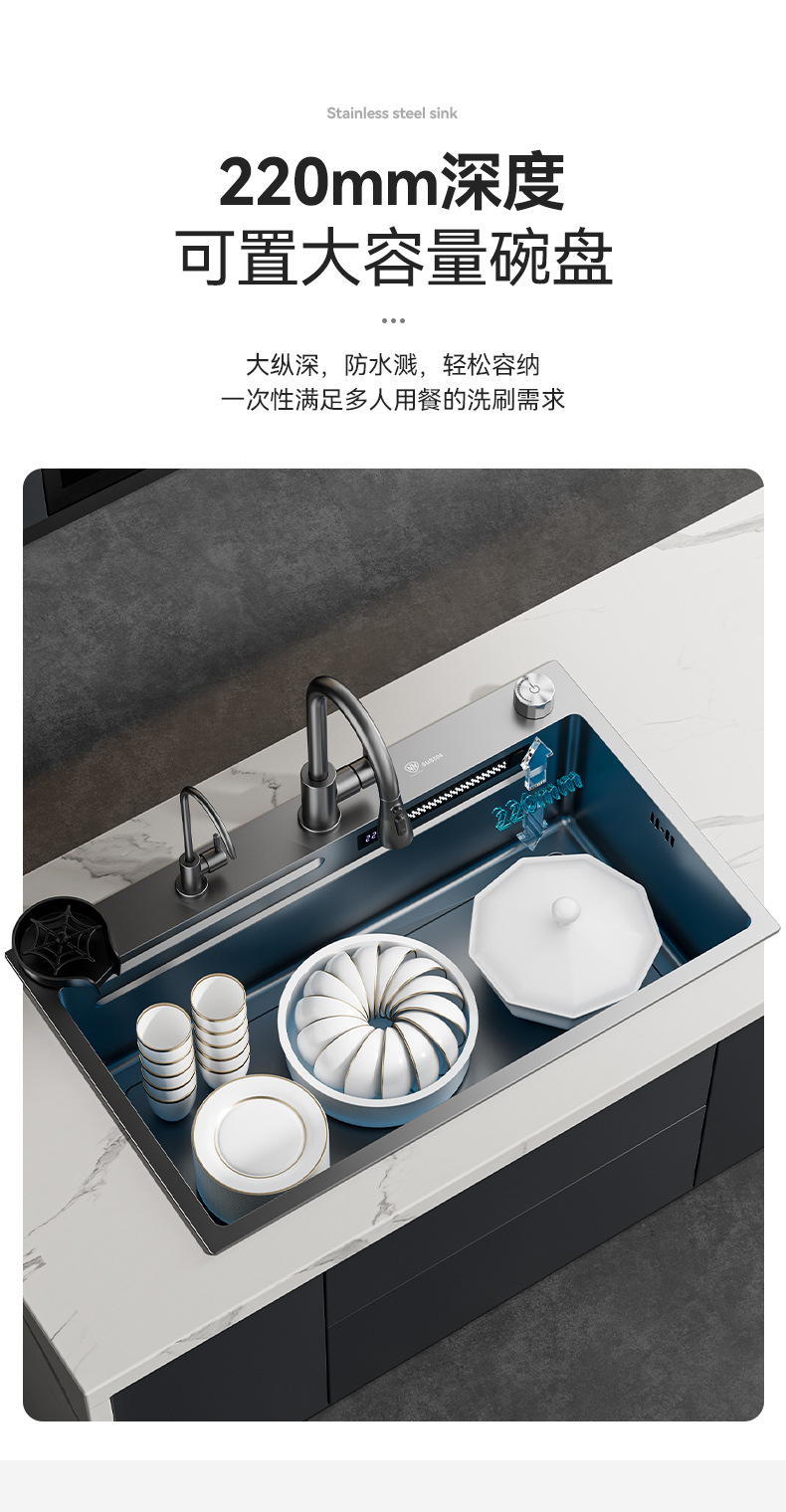 黒色デジタル滝大単槽水槽304ステンレス皿洗い池ナノ多機能シャワー洗面器