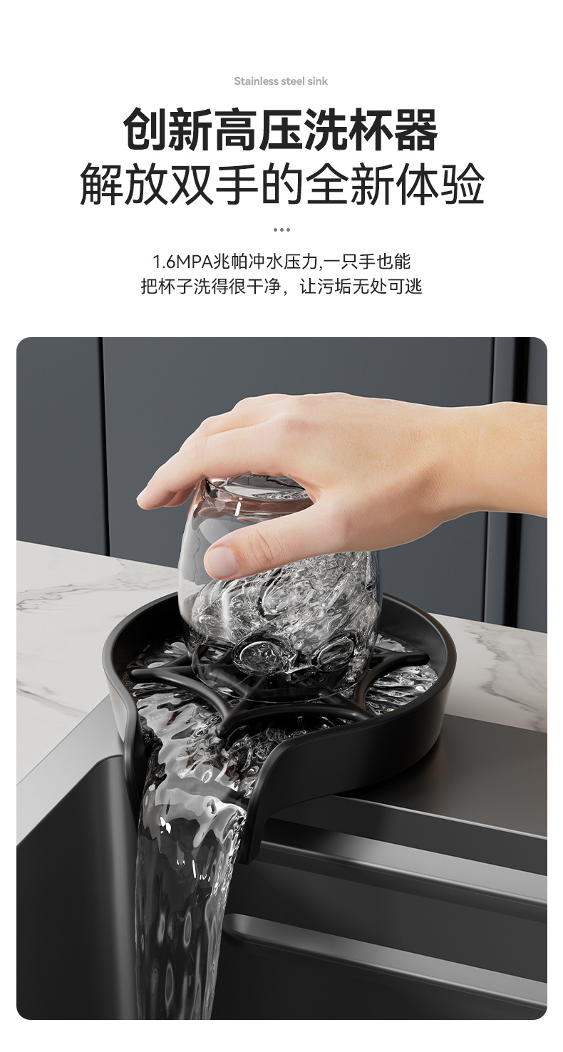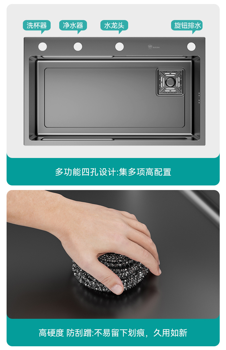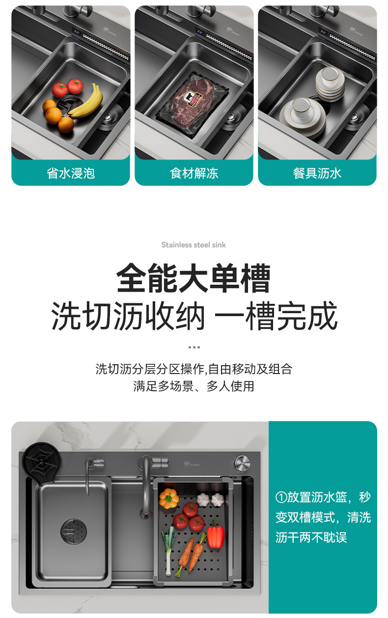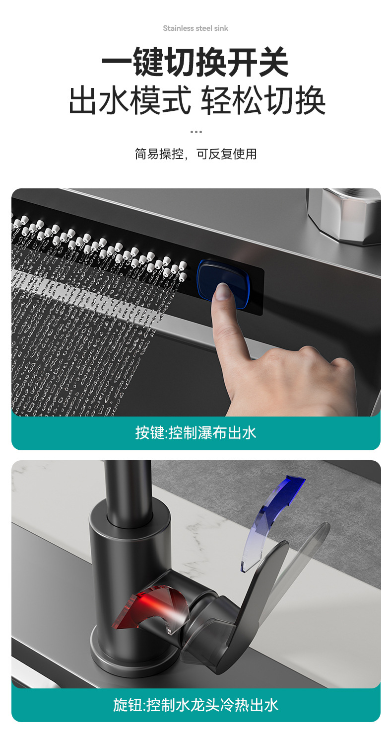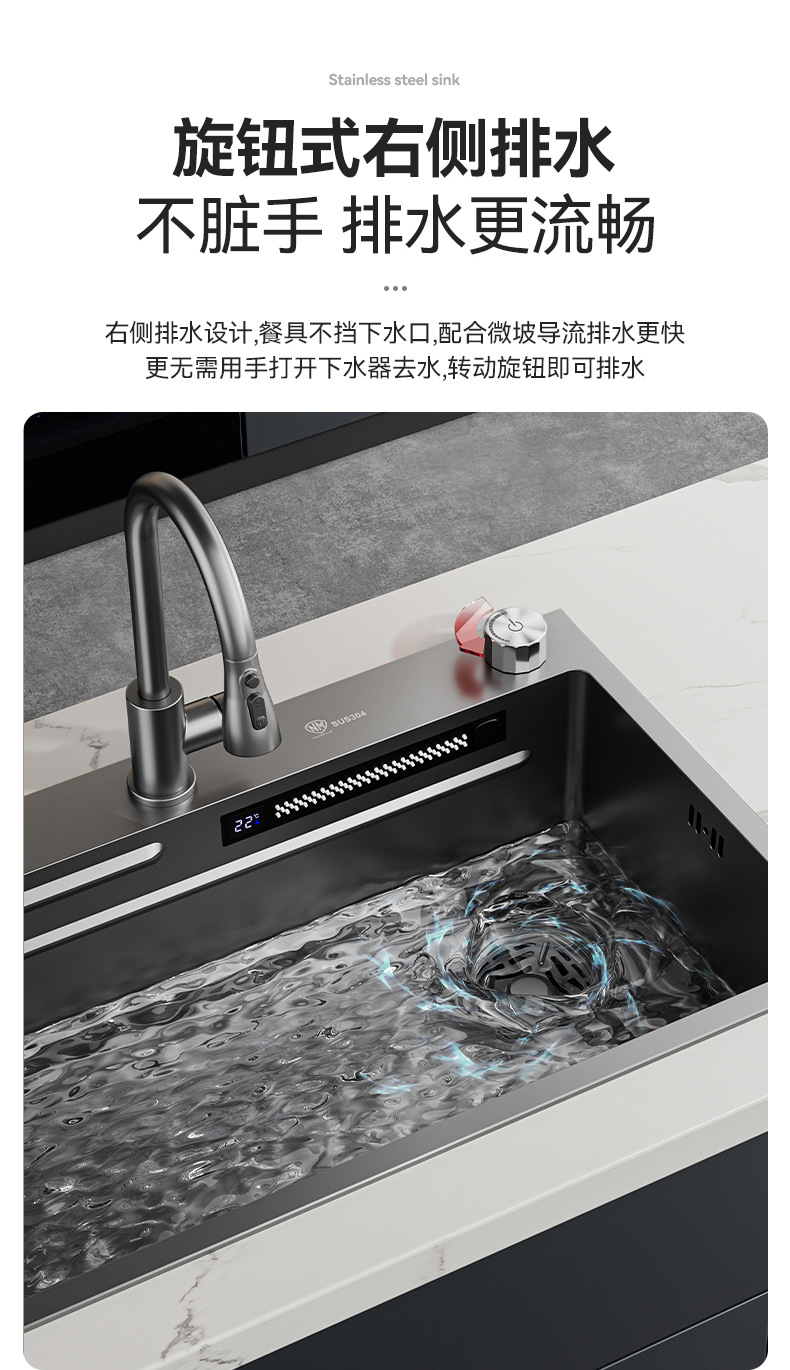 黒色デジタル滝大単槽水槽304ステンレス皿洗い池ナノ多機能シャワー洗面器