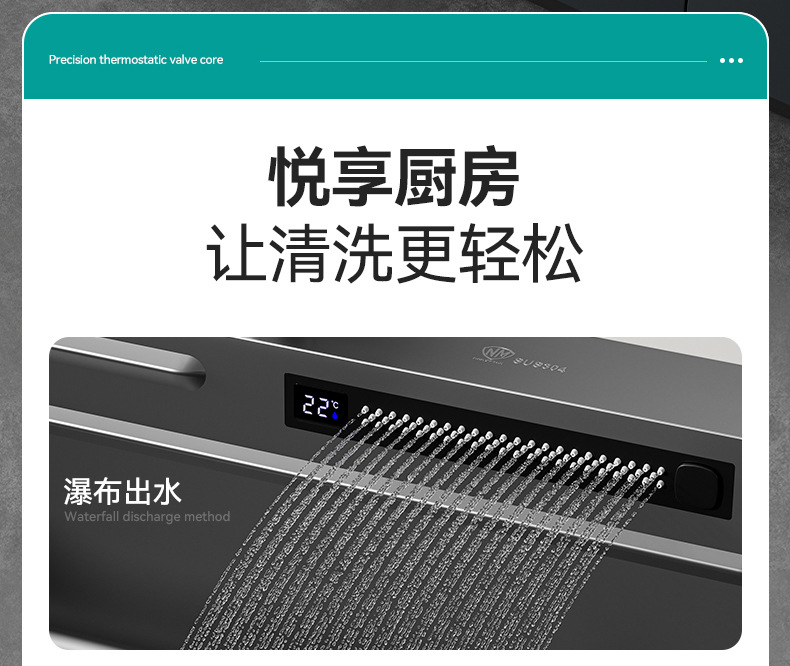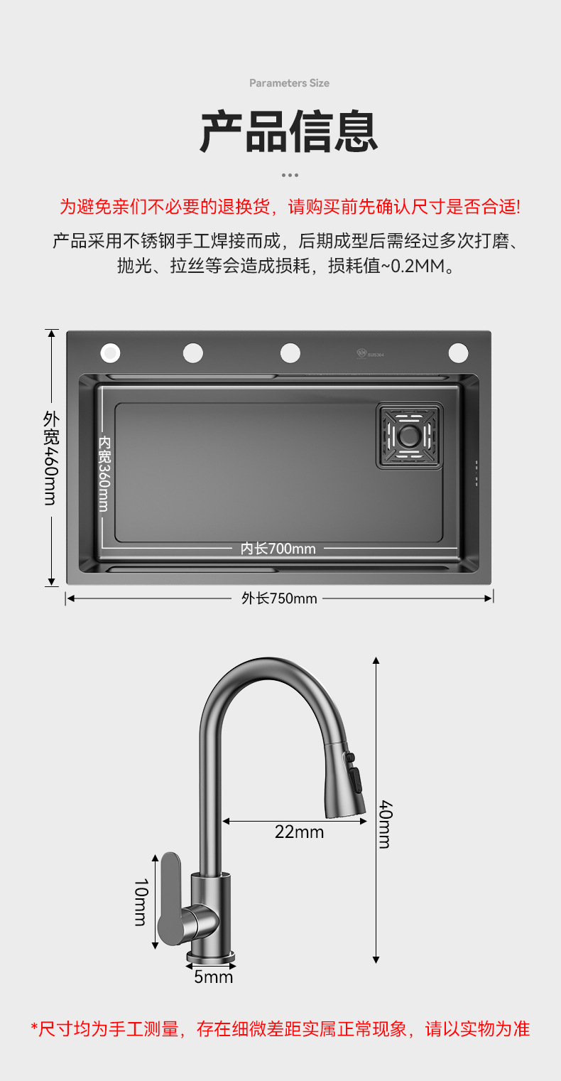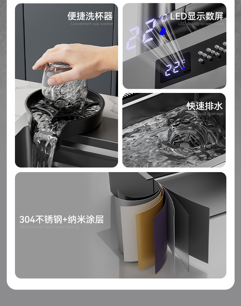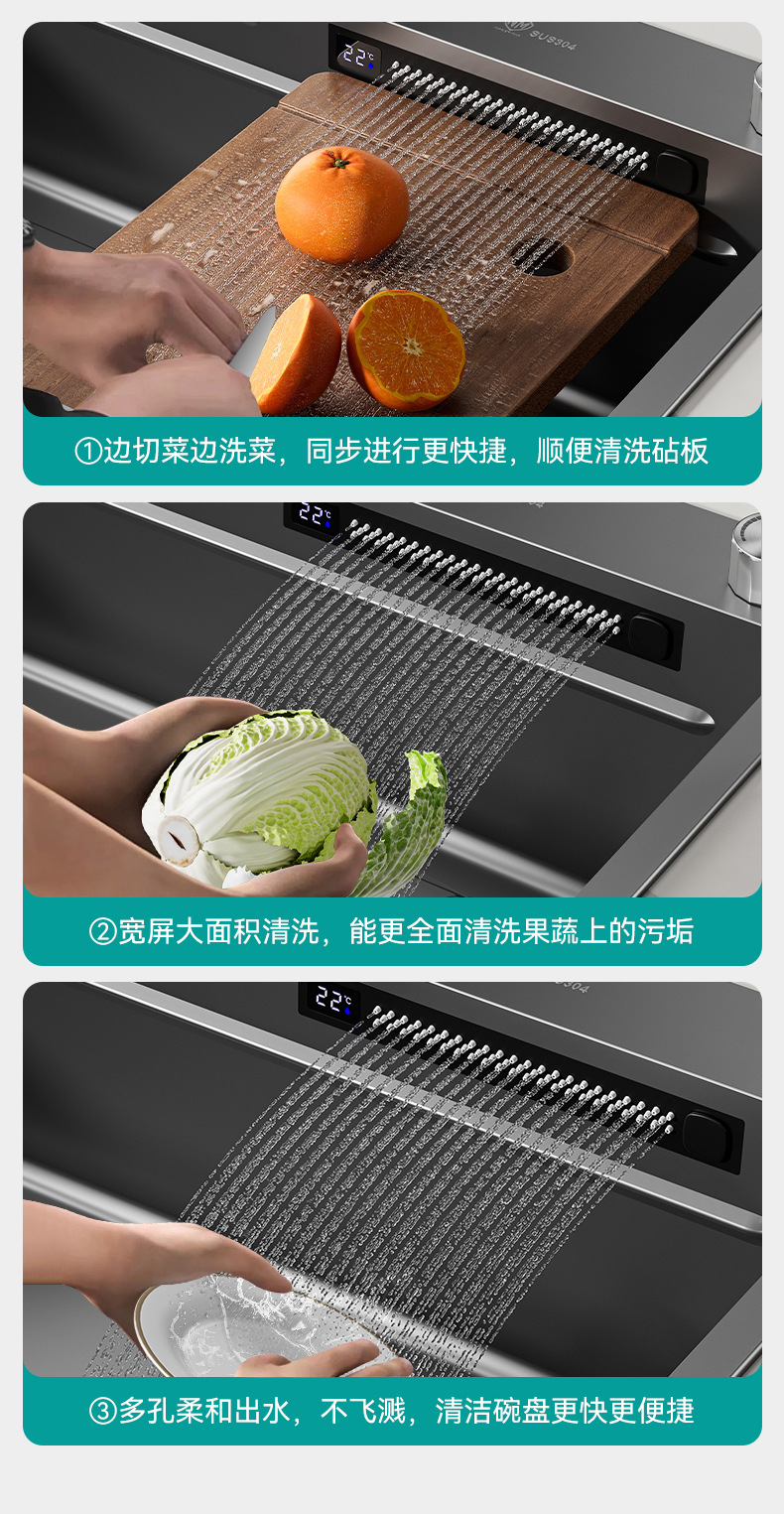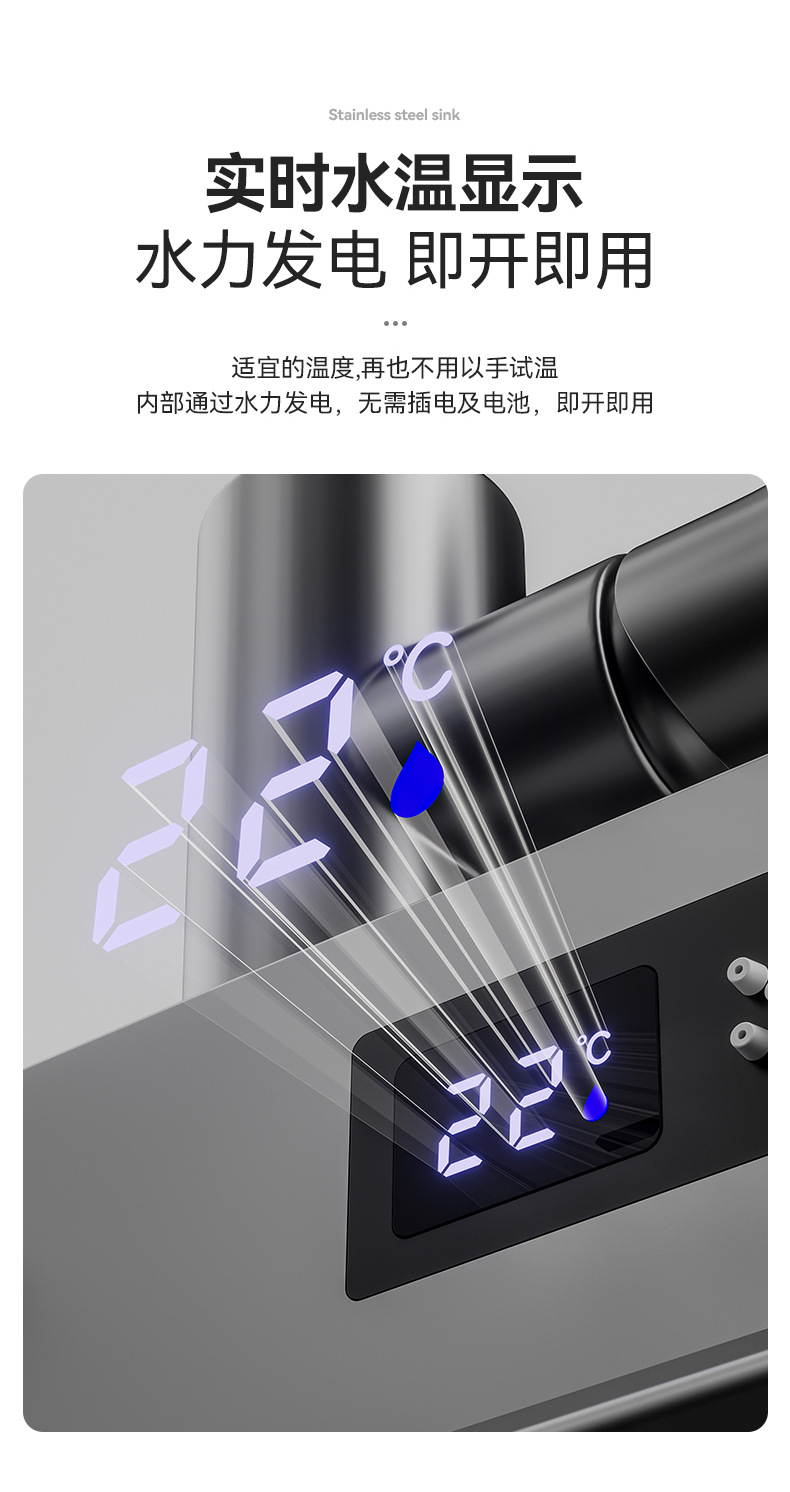 黒色デジタル滝大単槽水槽304ステンレス皿洗い池ナノ多機能シャワー洗面器