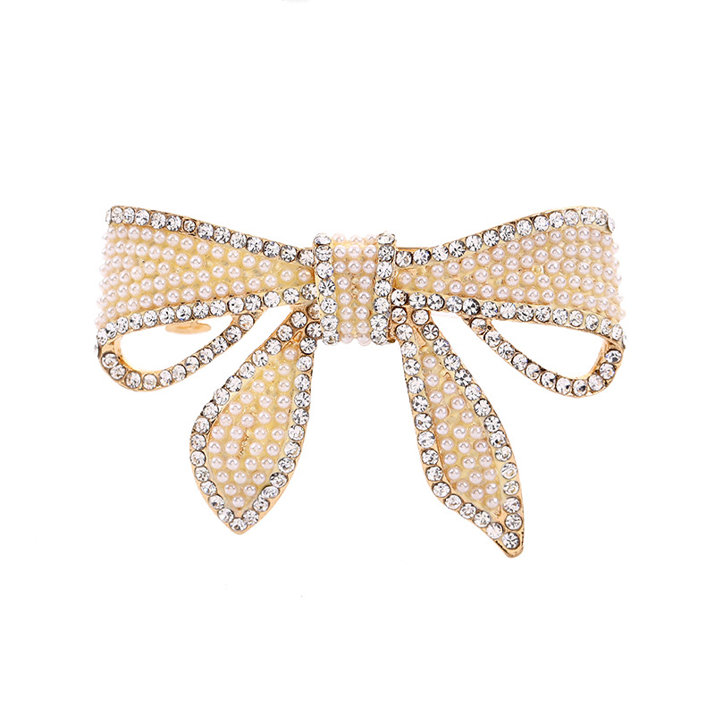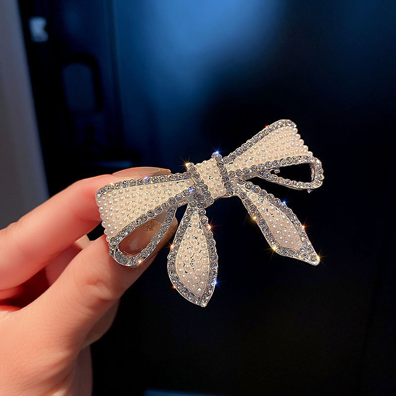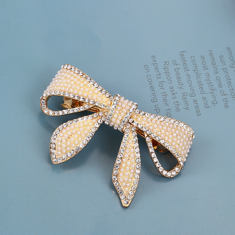 女性式韓国ファッション真珠にダイヤモンドを入れた蝶結びのスプリングクリップ気質の高級感のあるヘアピンが可愛いお姫様の髪飾りです。