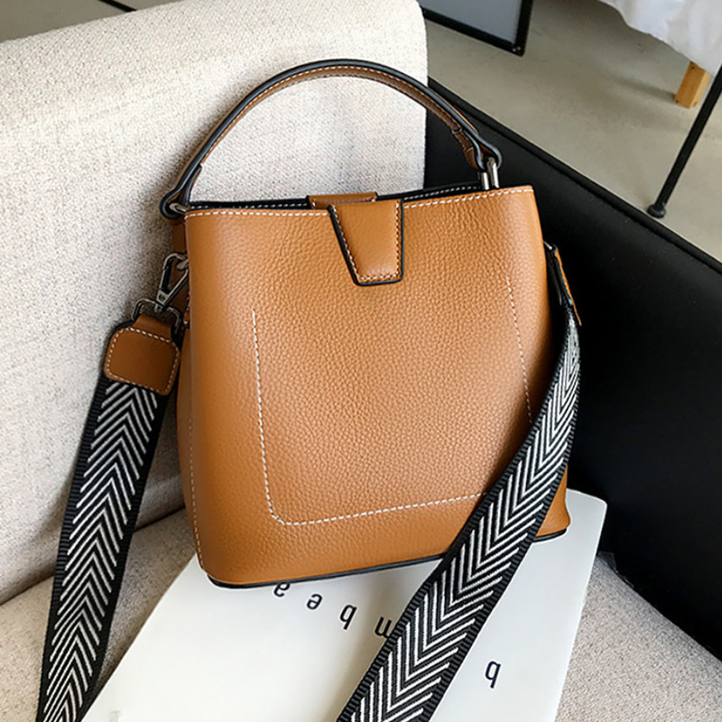 现货新款水桶包潮头层牛皮2024时尚单肩包复古女土百搭斜挎包