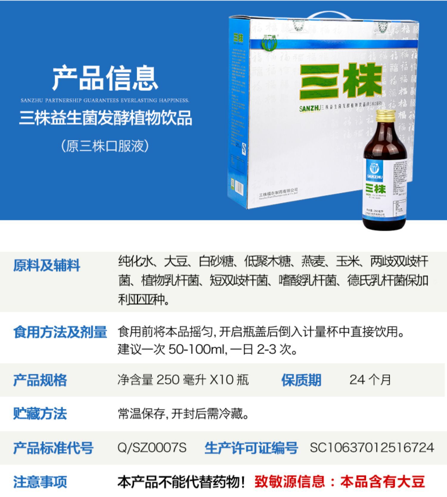 三株口服液礼盒装益生菌发酵植物饮品量大咨询客服无痕代发现货