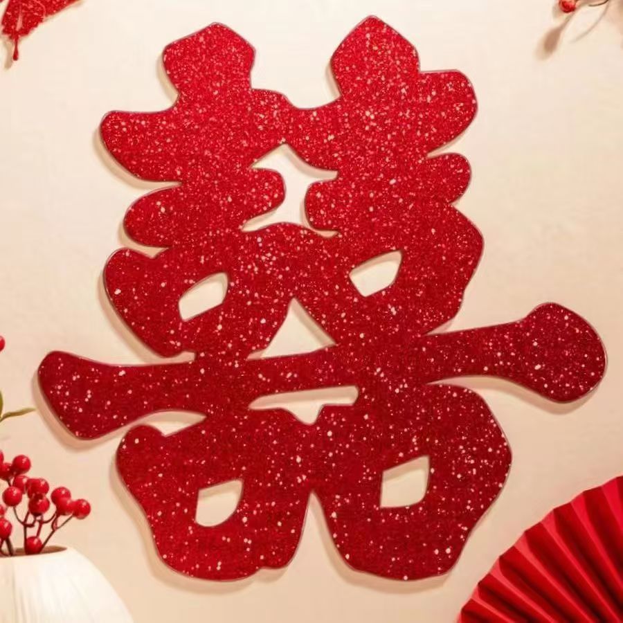 金葱喜字結婚専用赤いネット赤喜字貼り結婚室珠光喜字貼り背景壁貼り結婚祝い装飾