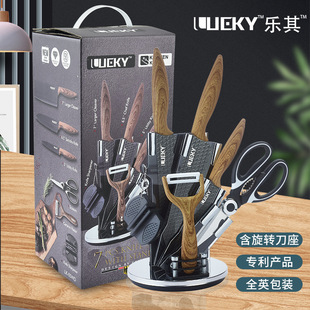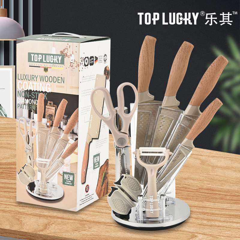 陽江楽其の包丁8点セット刃物セット回転アクリル刃座刀切セット木柄包丁