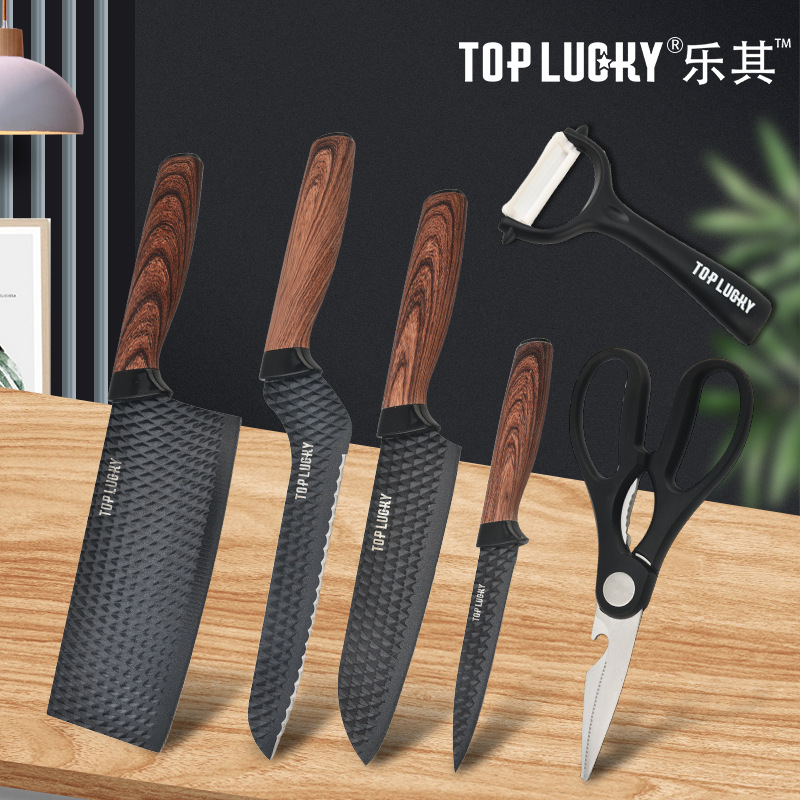 Leqi Tools ダイヤモンドパターンナイフセット 6 ピースシェフナイフはさみ二層ノンスティックコーティング包丁セット