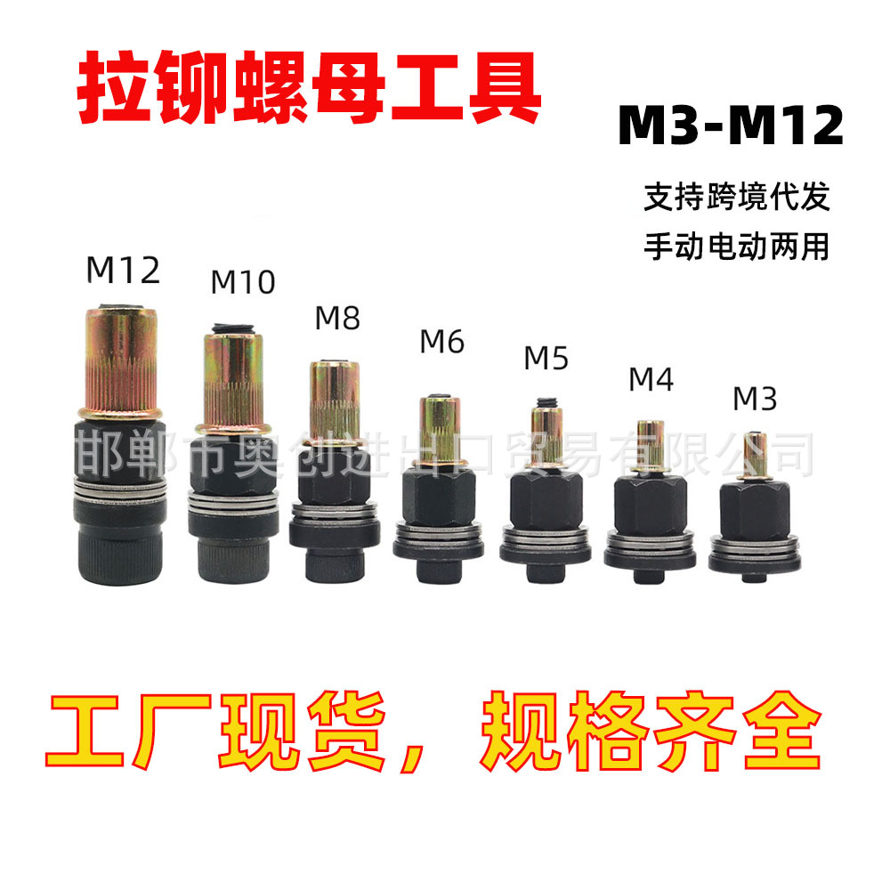 拉铆螺母工具M3-M12电动拉姆头手动拉铆工具头拉母头手动拉铆枪