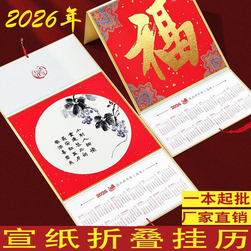 2026年馬年宣紙空白折りたたみ壁掛けカレンダー硬質カード紙カレンダー書道中国画作品紙毛筆書道壁掛けカレンダー