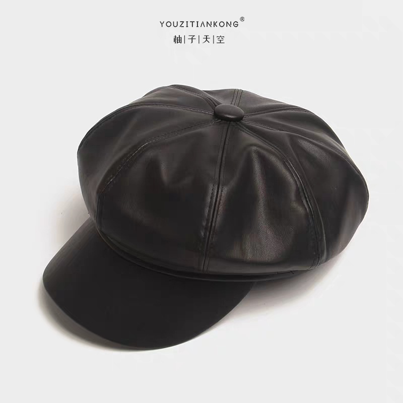 新しい純色PU皮質八角帽レトロ紳士風ベレー帽百合ネット赤返金画家帽子卸売り