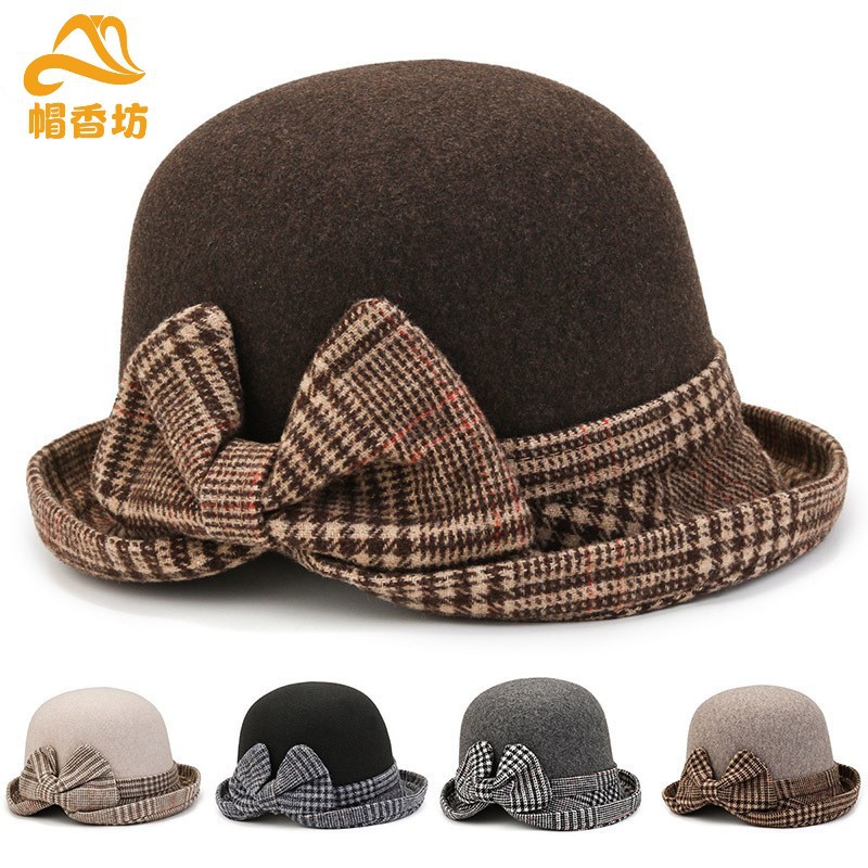 中高年女性用帽子 冬用 毛糸帽子 厚手 おばあちゃん用布製帽子 春秋用 フィッシャーマンハット つば広