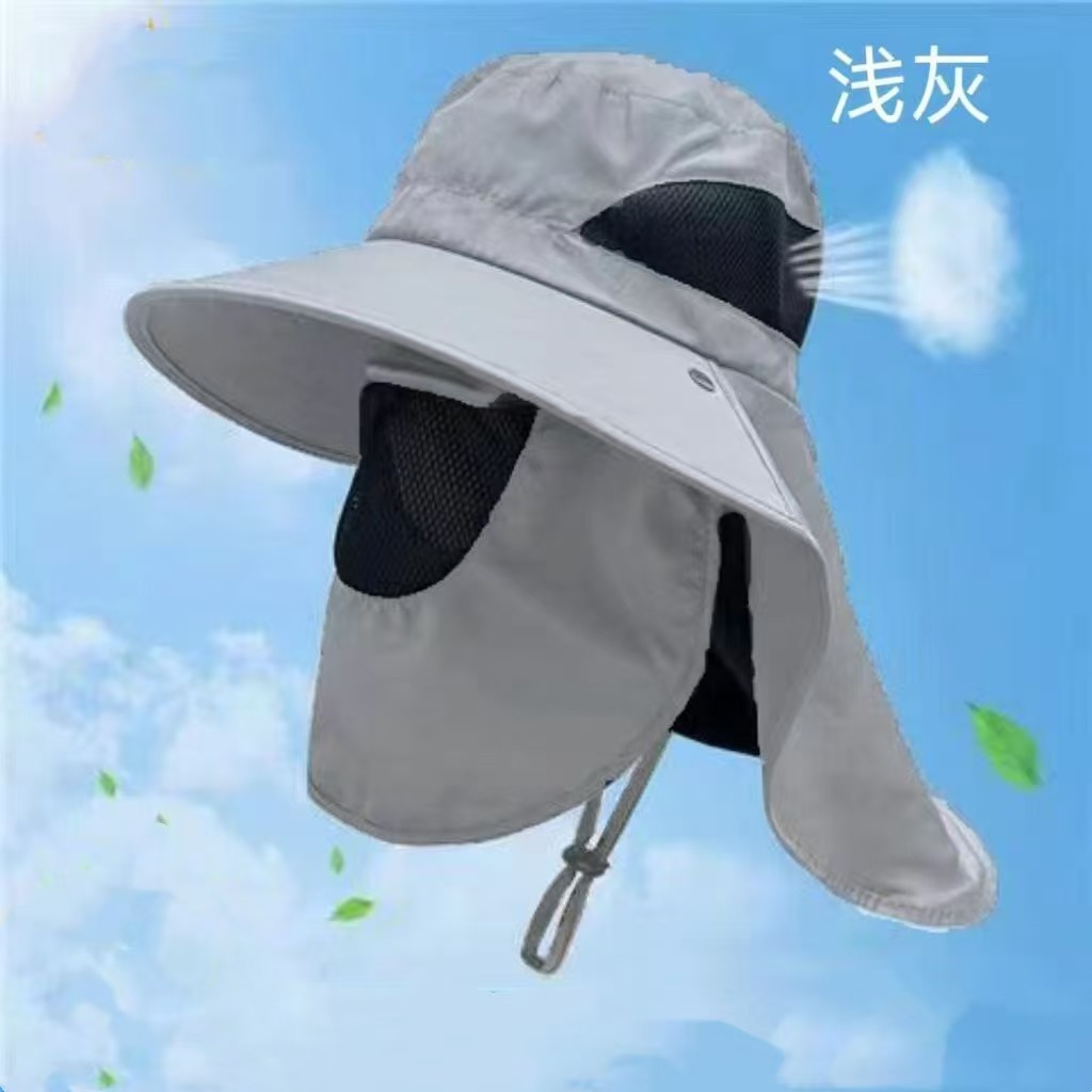 夏の男性用日焼け止め帽子、屋外登山用、大きなつば付き、首を保護するショールハット、漁師の帽子、大人用