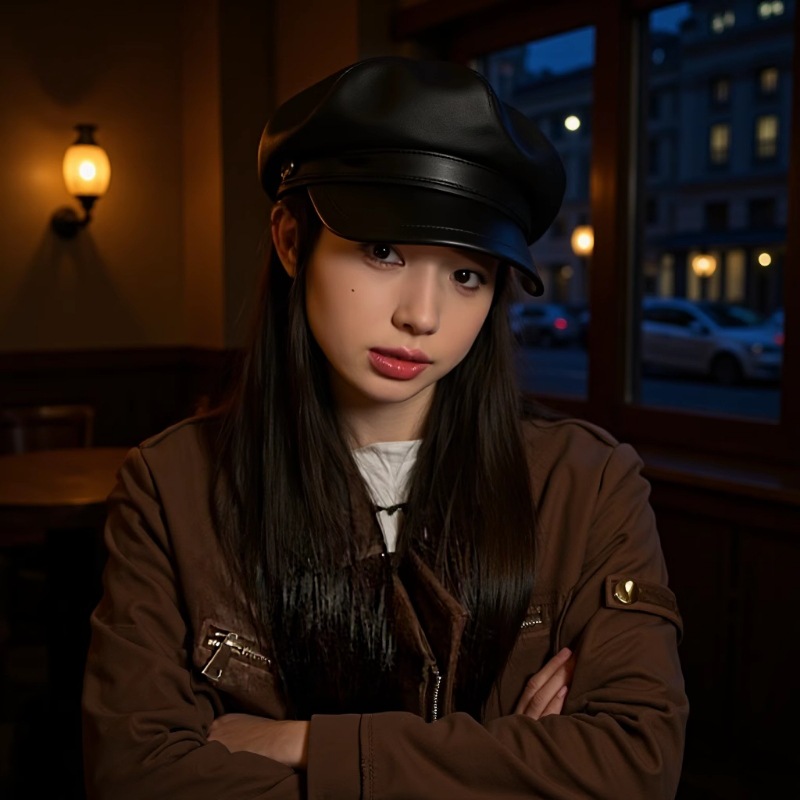 秋冬用革帽子八角帽防水防風保温レディース韓国風レトロ水波模様デザイン