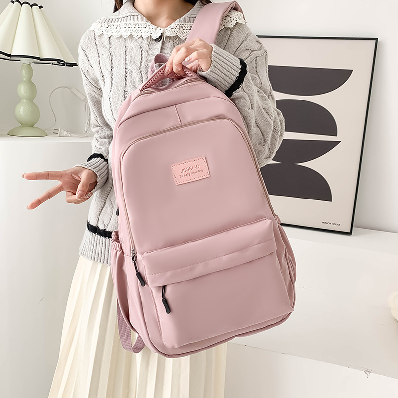 跨境批发高中生纯色书包简约休闲百搭大容量双肩包日系轻便背包
