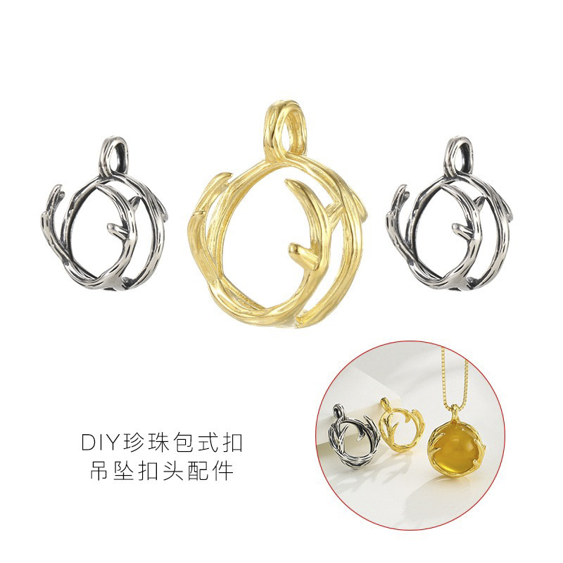 レトロな枯れた枝に穴がないペンダントの空托diyモザイクボール真珠ペンダントバッグ式ボタンホルダー18kゴールドバックル