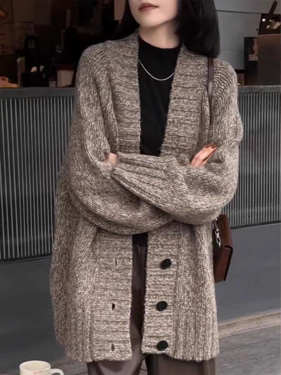 25 春と秋のカシミア カーディガン レディース ルーズ ショート セーター ジャケット ソフトでワックスのようなセーター 多用途でスリムな気質