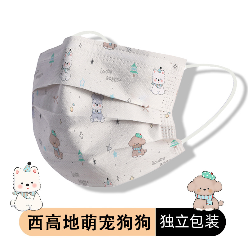 一次性防护口罩防雾霾防尘网红口罩成人西高地狗狗卡通口罩独立装