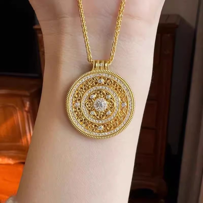 古法祥云罗盘2025新款项链高级感金色吊坠新中式轻奢小众