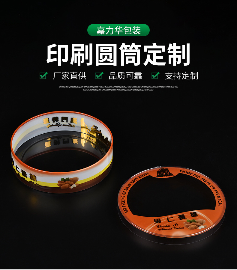 Pvc印刷円筒包装果仁タルト製品包装箱食品外円筒透明カラー印刷ロゴ