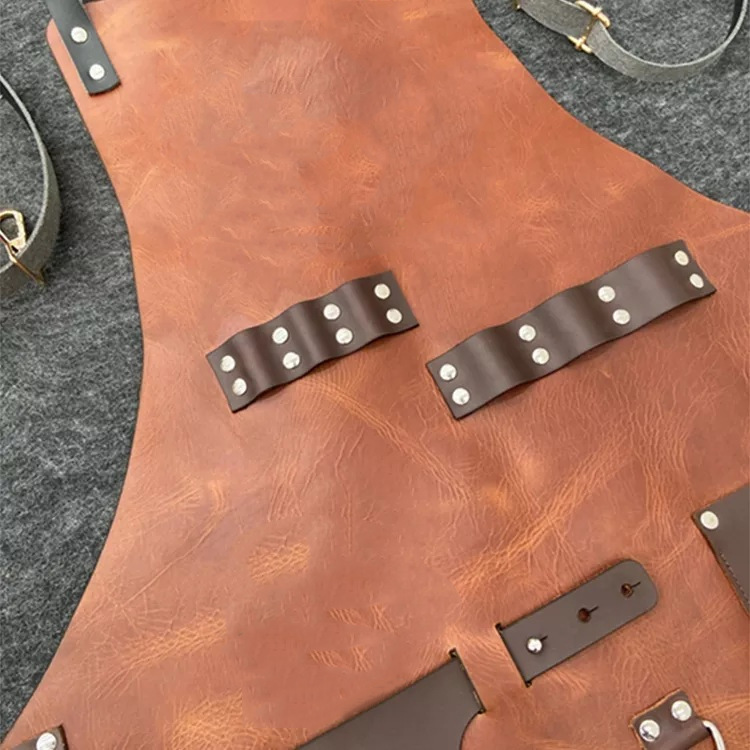 アマゾン欧米の純色レトロPUエプロン革エプロンクロスボーダー職人木工多機能首掛けツールエプロン