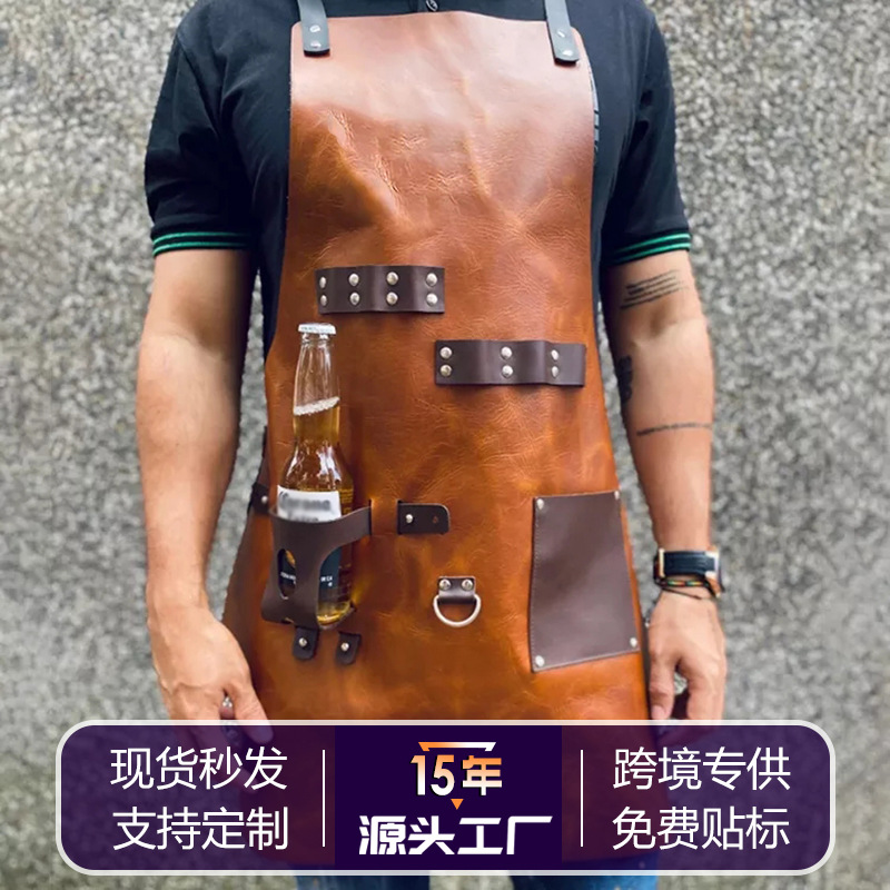 跨境厂家直供pu皮围裙防水酒瓶套多功能野餐烘焙师工作服围裙定制