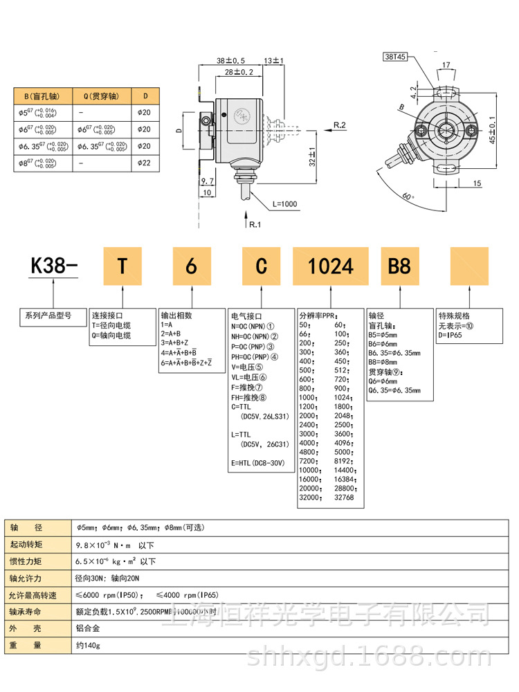 仕様 1000パルス、その他はカスタマーサービスに連絡してカスタマイズしてください。