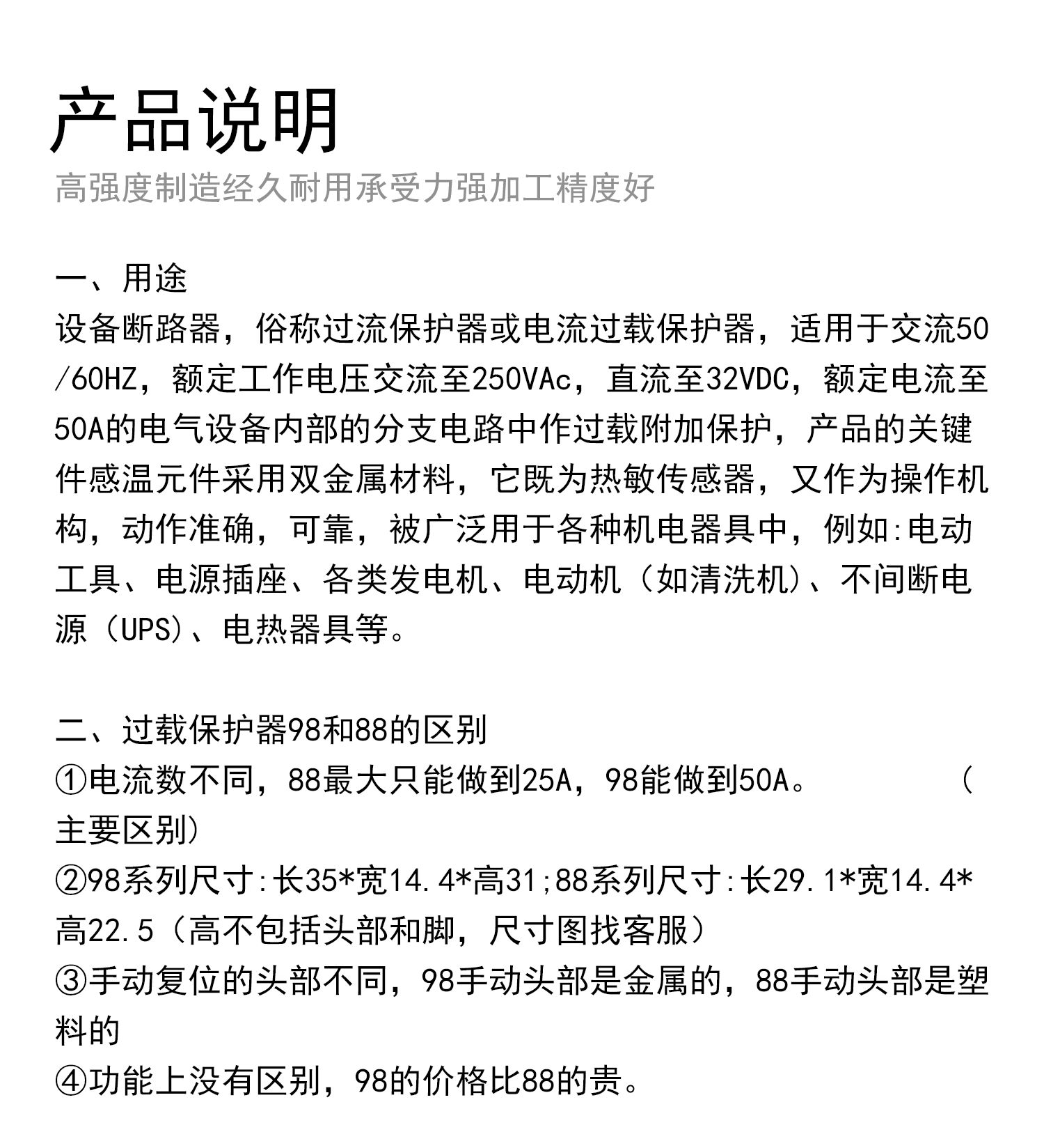 ZE系列过载保护器电流保护按钮开关5~50A手动/自动过流过载保护器
