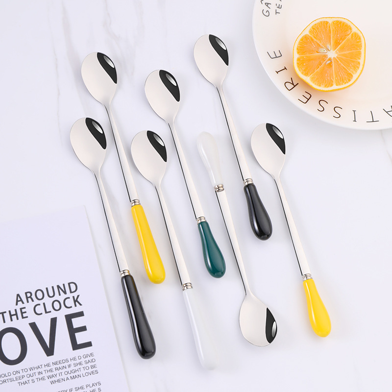 批发创意陶瓷猫咪不锈钢咖啡勺蜂蜜搅拌勺 马克杯长柄不锈钢勺子