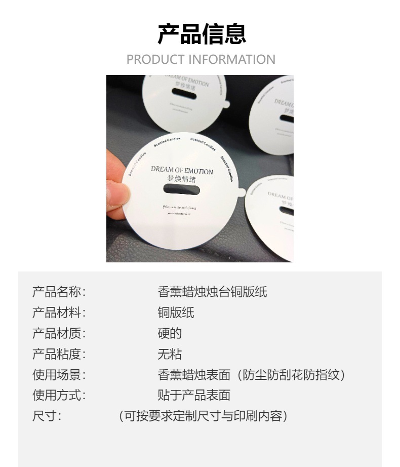 メーカー直販アロマキャンドル燭台銅版紙防塵保護膜円形サイズ形状パターンカスタム