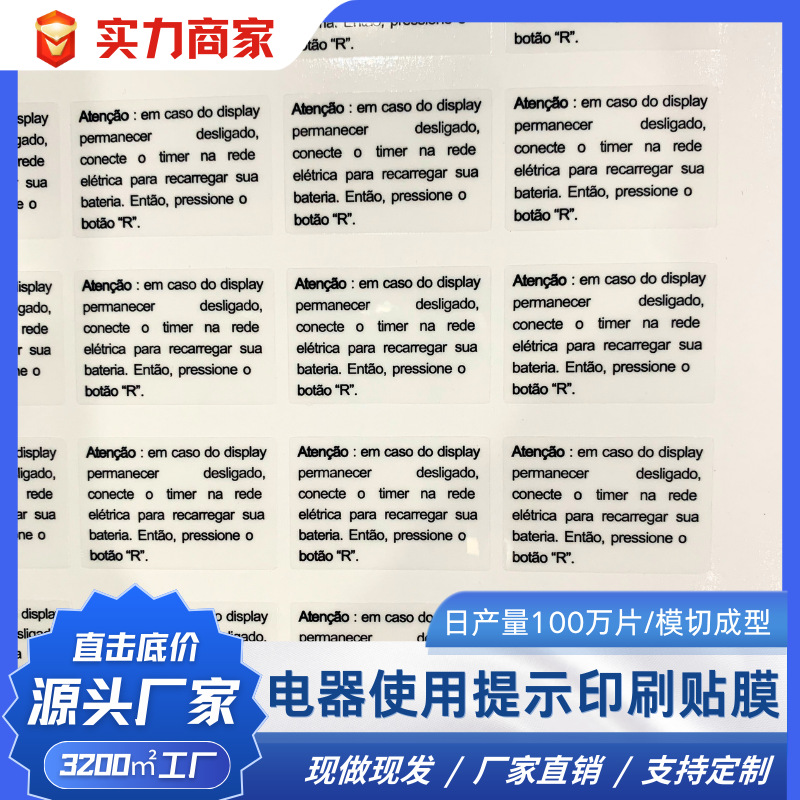 電気製品の使用説明粘着シールフィルム高粘着材質防水印刷保護フィルムアクリルゴム