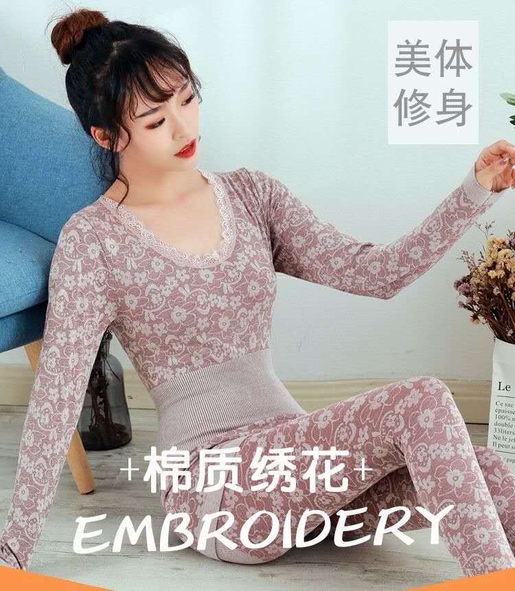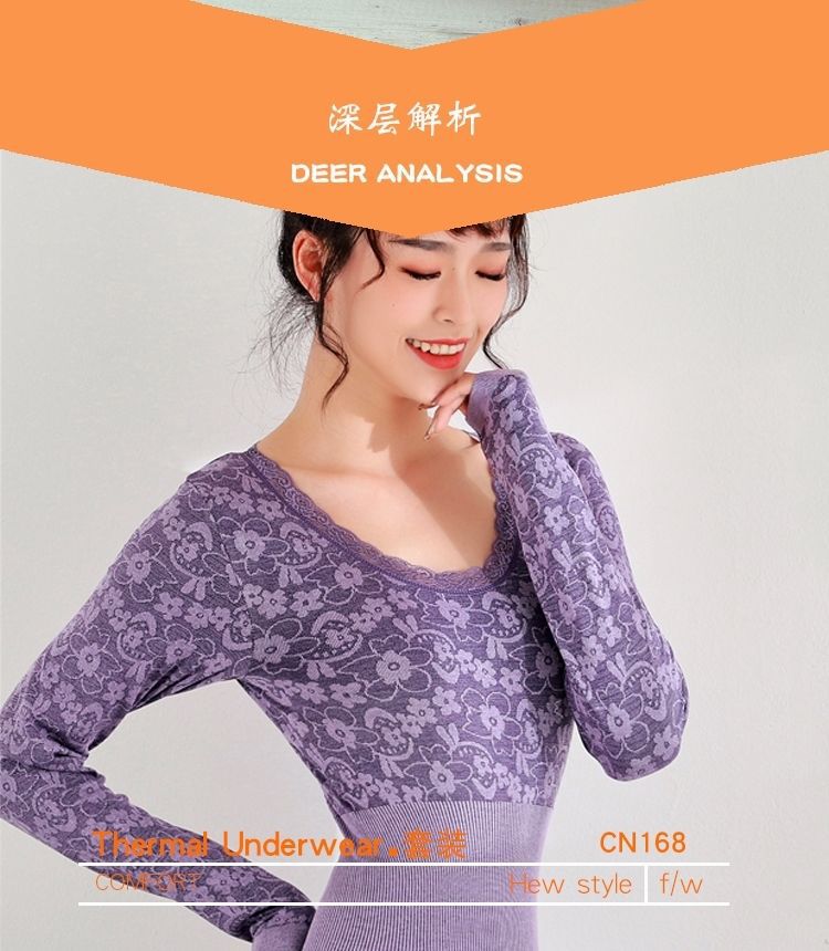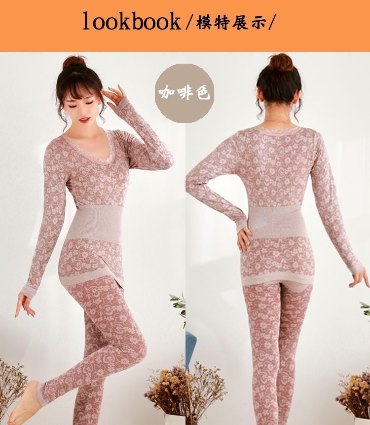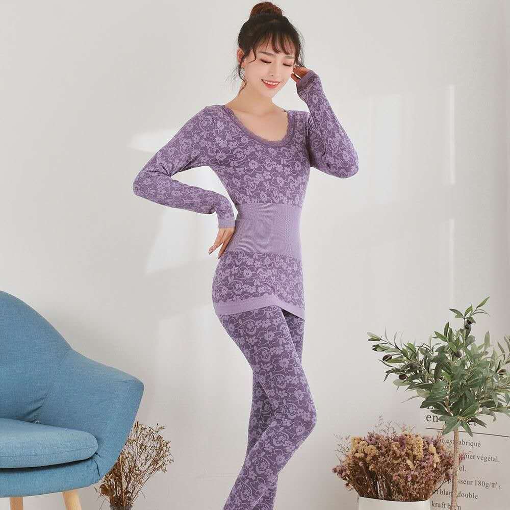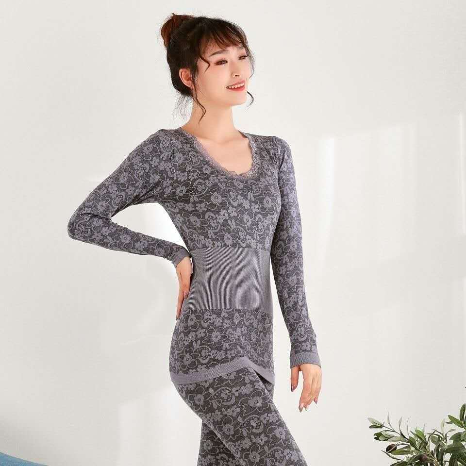 蝶柄薄手レディース保温スーツ モダール冬用スリム保温下着 ドゥインフーリーウェルビンググッズ