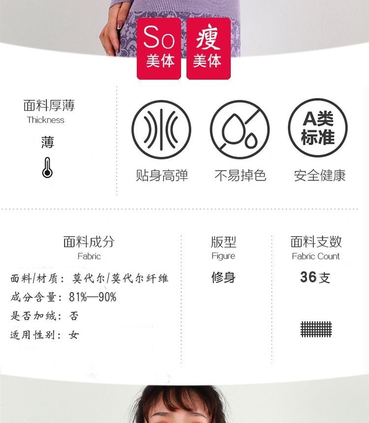 B103新型モダールホームウェアパジャマ、ウエストシェイプ、シームレスボディスーツ、保温下着、女性用セット、タイトフィット